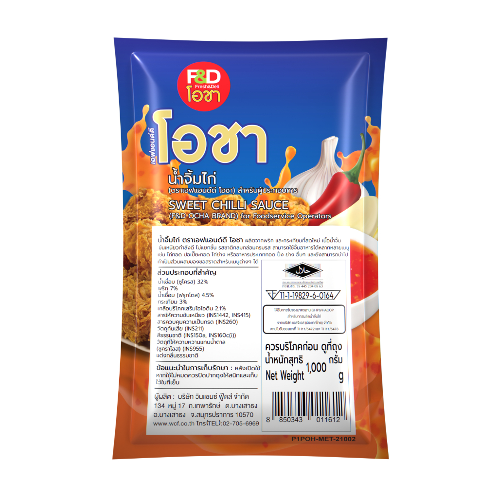[ขายยกลัง] เอฟแอนด์ดี โอชา น้ำจิ้มไก่ แบบถุง ขนาด 1,000 กรัม x 12 ถุง - F&D Ocha Sweet Chilli Sauce