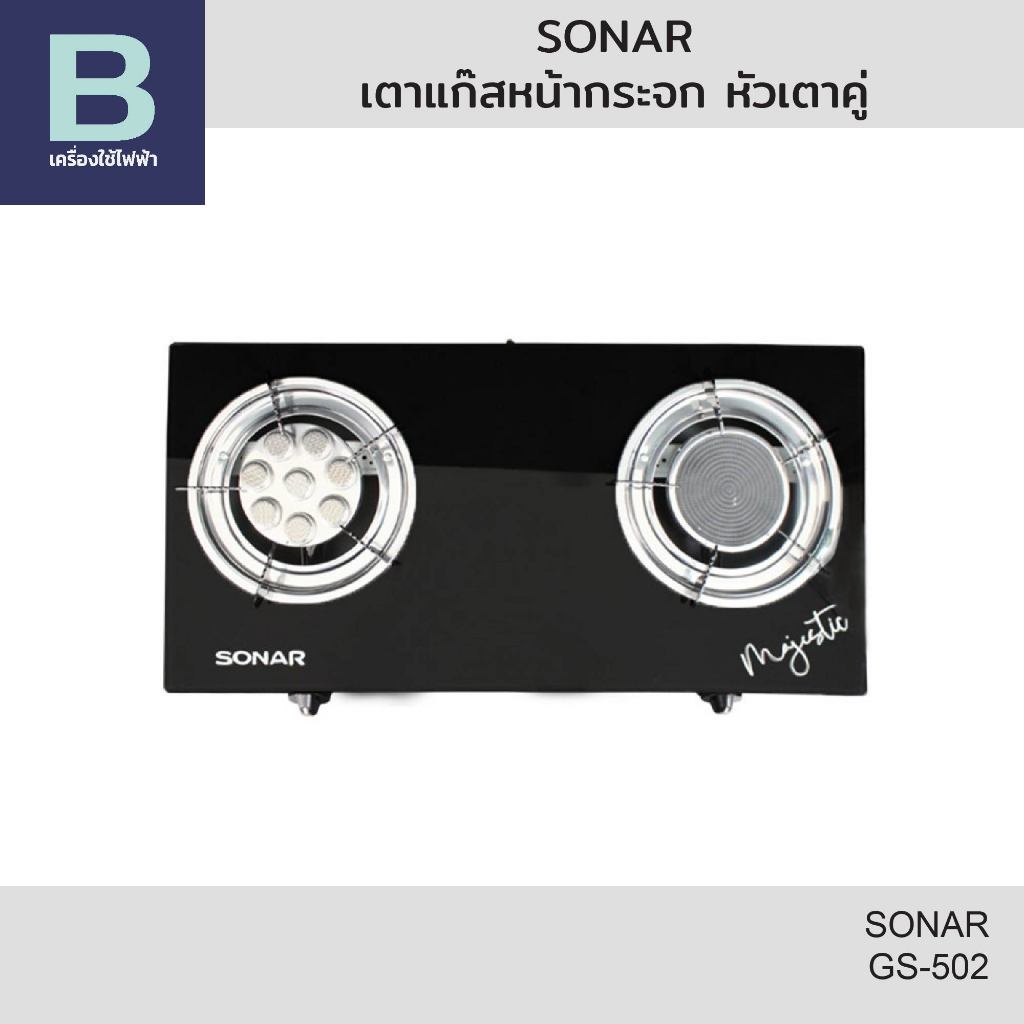 SONAR เตาแก๊สหน้ากระจก หัวเตาคู่ รุ่น GS-502