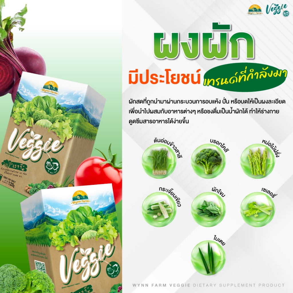 Veggie เวจจี้ พี่วิลลี่พี่หอย ผงผักรวม 30 ชนิด ช่วยขับถ่ายปรับสมดุลลำไส้ [1กล่อง] 10 ซอง