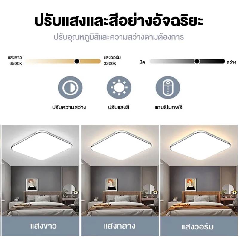 ไฟเพดานบ้าน โคมไฟเพดานรีโมท โคมไฟเพดาน LED ไฟเพดาน หรี่แสงได้ พร้อมรีโมตคอนโทรล เบาและบางลง