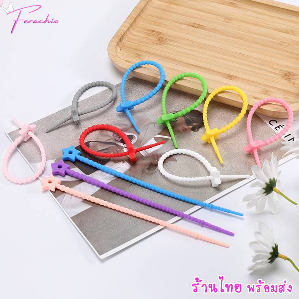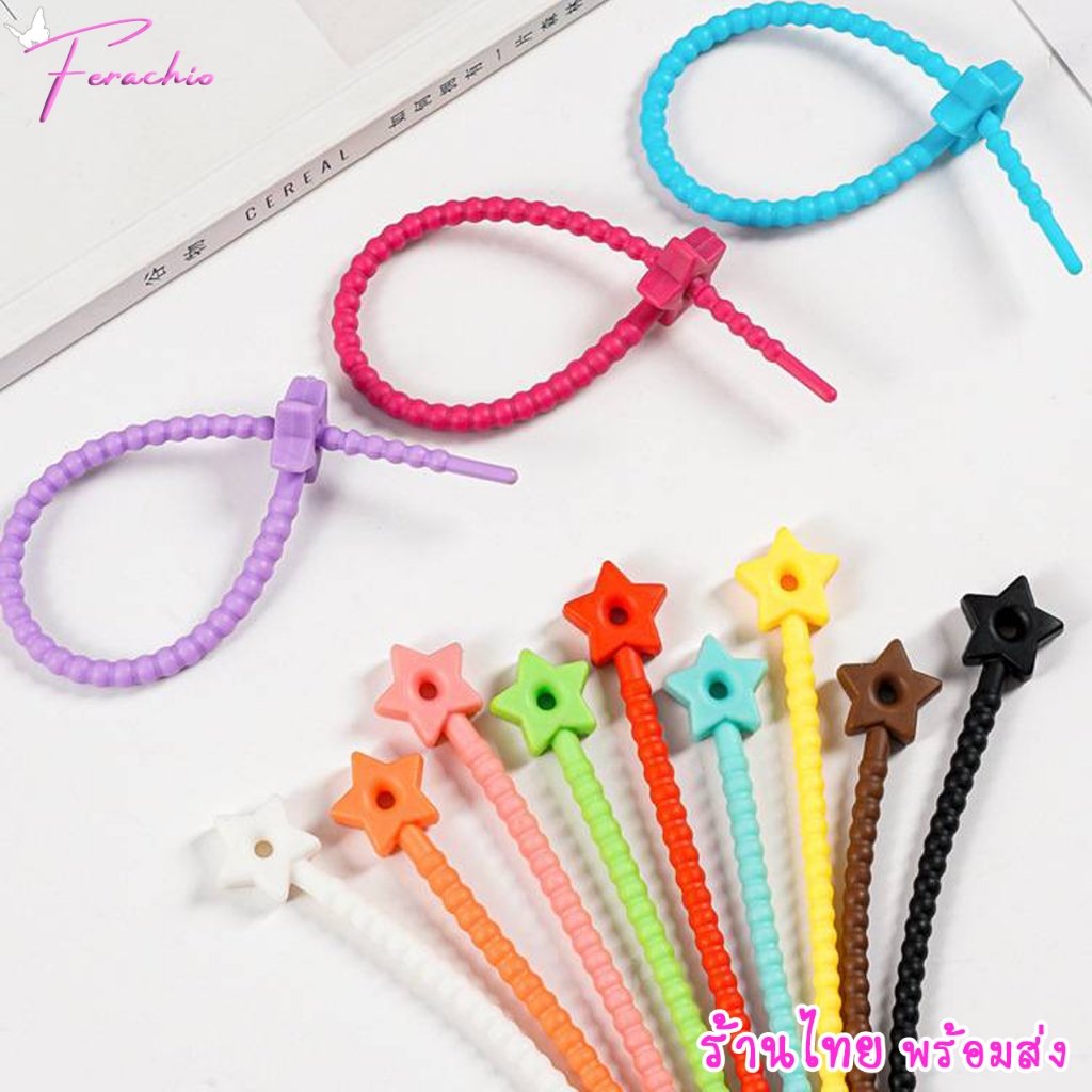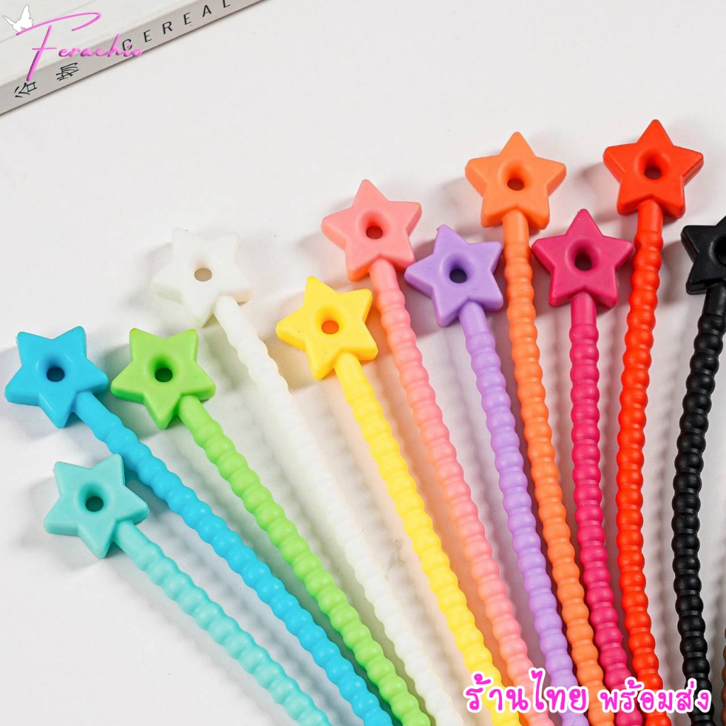 พร้อมส่ง สายคล้องซิลิโคน สายรัด พวงกุญแจ รูปดาว ยืดหยุ่น ใช้ซ้ำได้ อเนกประสงค์ DIY สีสดใส