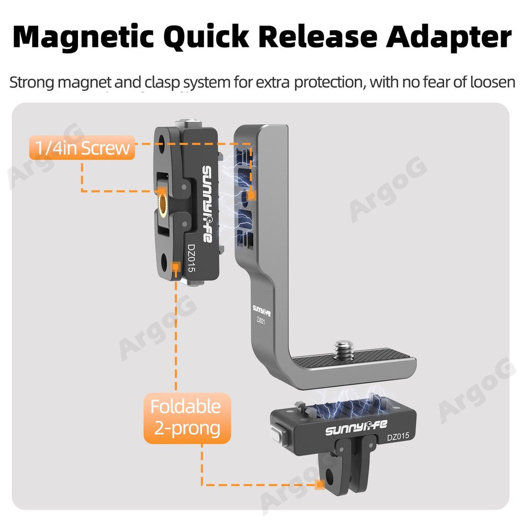 Sunnylife แนวตั้ง-แนวนอน Mount สําหรับ Insta360 X5/X4/X4 Air แนวนอน Action Mount พร้อมแม่เหล็กอะแดปเตอร์ Quick Release Insta360 X5 อุปกรณ์เสริม