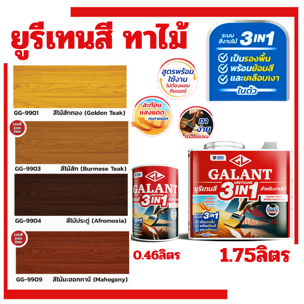 กาแลนท์ ยูรีเทนสี 3in1 งานย้อมสีไม้ GALANT 0.46ลิตร 1.75ลิตร ไม้สัก ไม้ประดู่ ไม้มะฮอกกานี รองพื้น เคลือบเงาไม้ สีทาไม้