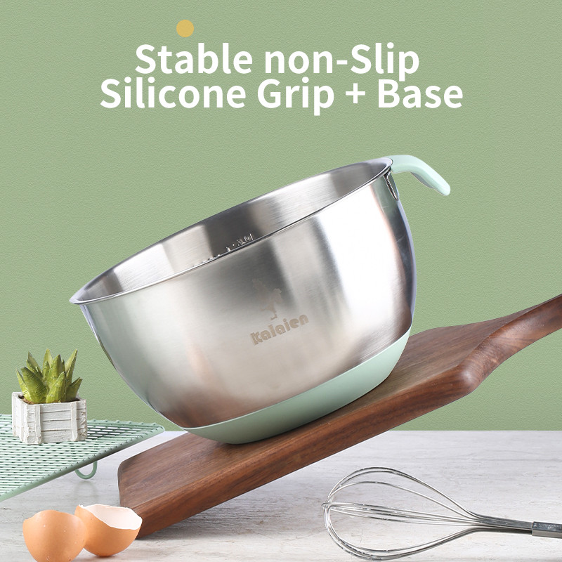 Kalaien สแตนเลสไข่ B eaters อ่างชามทำอาหารขนาดใหญ่เส้นผ่าศูนย์กลาง16/18/20/22/24เซนติเมตรอเนกประสงค์อบ, สลัด, แป้ง, ชามผสม w/ ซิลิโคนกันลื่น