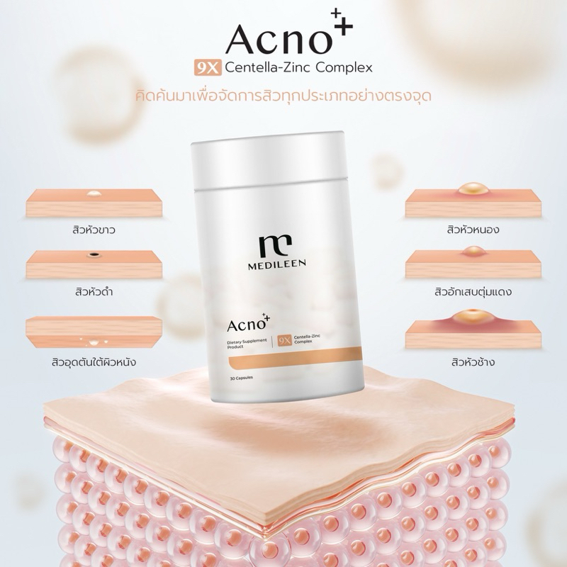 Acno+ ฟรี! ของแถม [ล็อตใหม่ ของแท้] วิตามินดูแลเรื่องสิว สิวฮอร์โมน สิวอักเสบ Medileen แอคโน เมดิลีน
