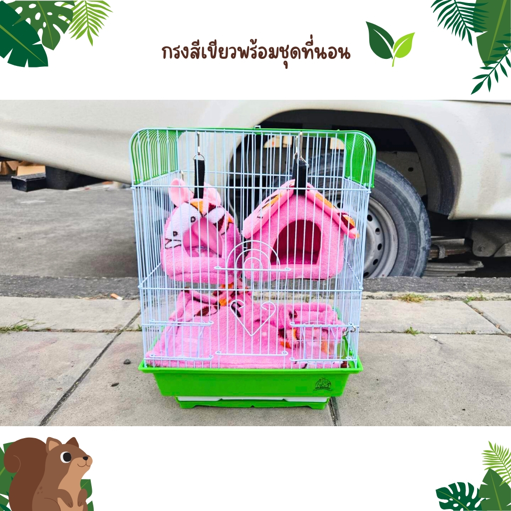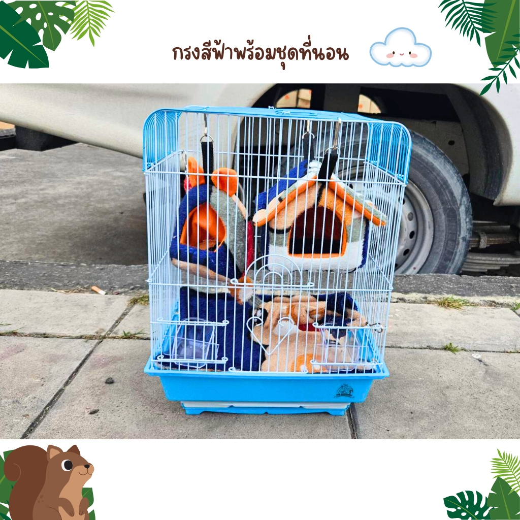 กรงชูก้าร์ไกลเดอร์ พร้อมที่นอน กรงFL977 พร้อมไม้เกาะ และถ้วยอาหาร กรงสัตว์เลี้ยง