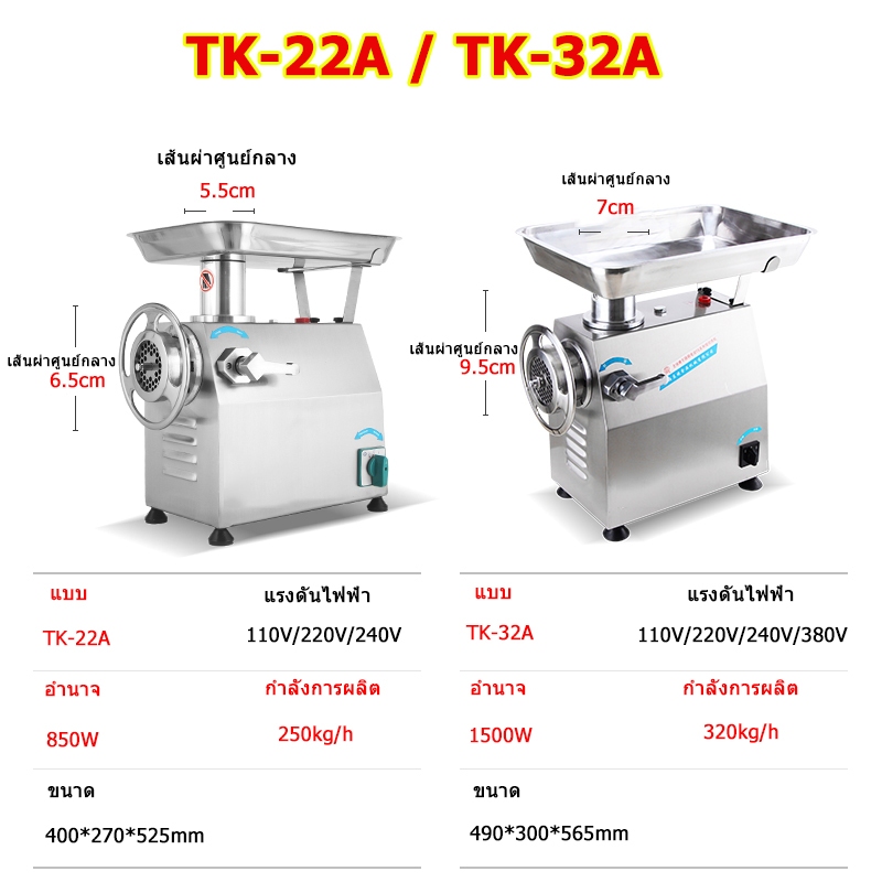 [ผ่อน 0%]เครื่องบดหมู เครื่องบดเนื้อ บดโครงไก่ บดพริกแกง ขนาดตั้งโต๊ะรุ่นเล็ก-กลาง ผลิต 320 กก./ชม