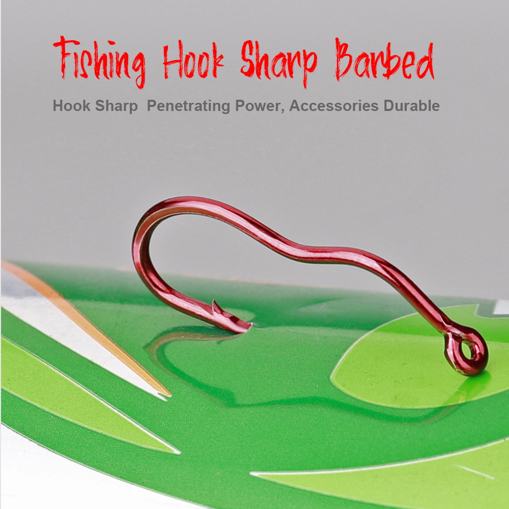 12ชิ้น/ถุงตะขอตกปลาพลิกอัตโนมัติกับบาร์บป้องกันการวิ่งป้องกันการหลุดร่วงตะขอตกปลาสีแดงสีกับแหวน