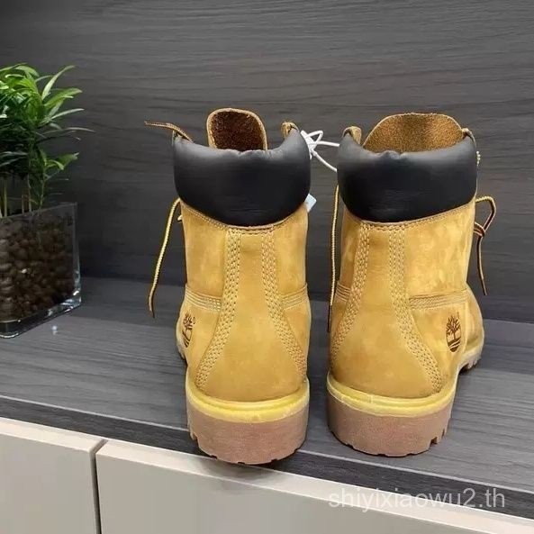 รองเท้าบู๊ตหนังสีเหลืองกันน้ำระดับสูง รองเท้าบู๊ตข้อเท้าย้อนยุคแบบยูนิเซ็กซ์ รองเท้าฤดูหนาว