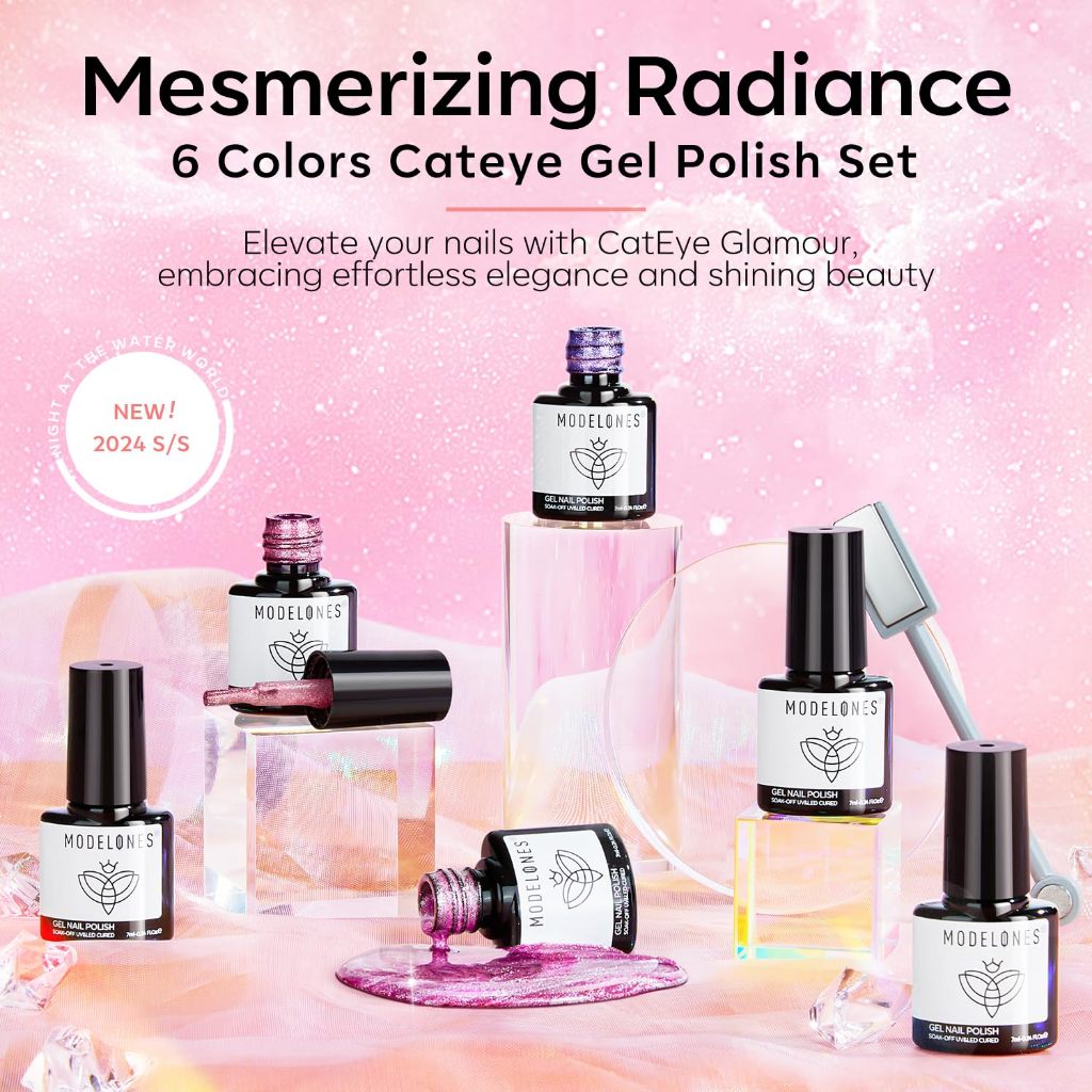 Modelones ยาทาเล็บเจลทาเล็บแมวตา 6 สีพร้อมแม่เหล็ก 7ml เหมาะสำหรับร้านทำเล็บ