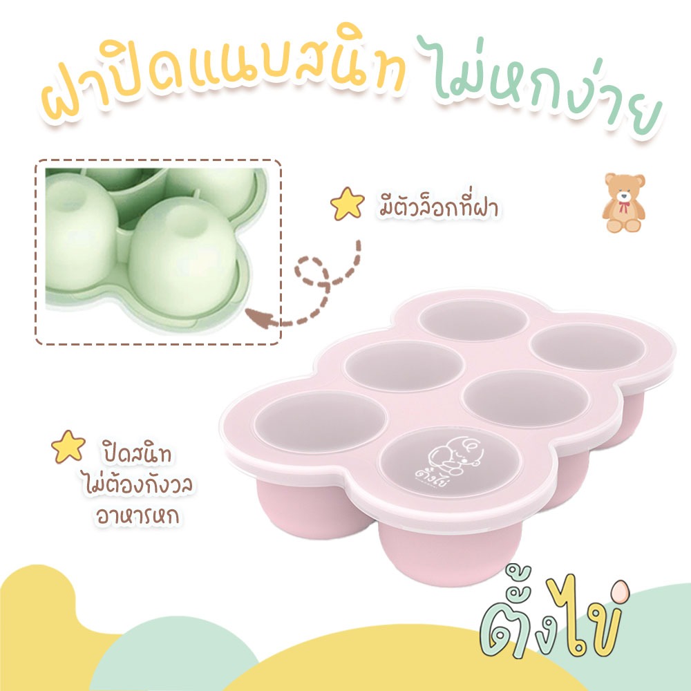 [ตั้งไข่] บล็อคซิลิโคนเก็บอาหารเด็ก พร้อมฝาปิด 6 ช่อง ช่องละ 3 ออนซ์ บล็อกซิลิโคนเด็ก ซิลิโคนเก็บอาหารเด็ก