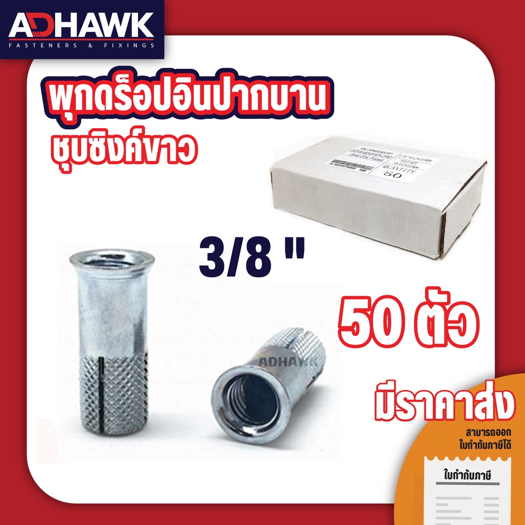 พุกดรอปอิน ปากบานขนาด 3/8"x30mm. ชุบซิงค์ Drop In Anchor