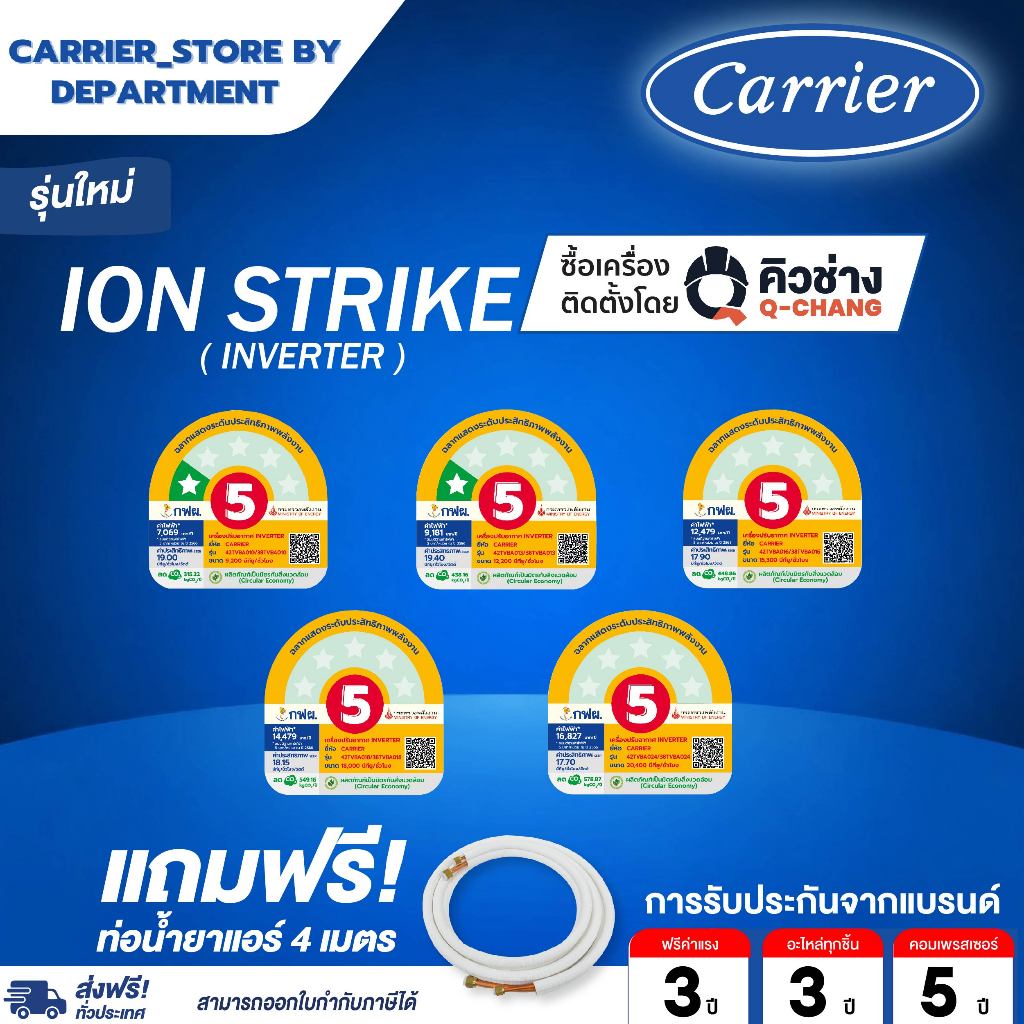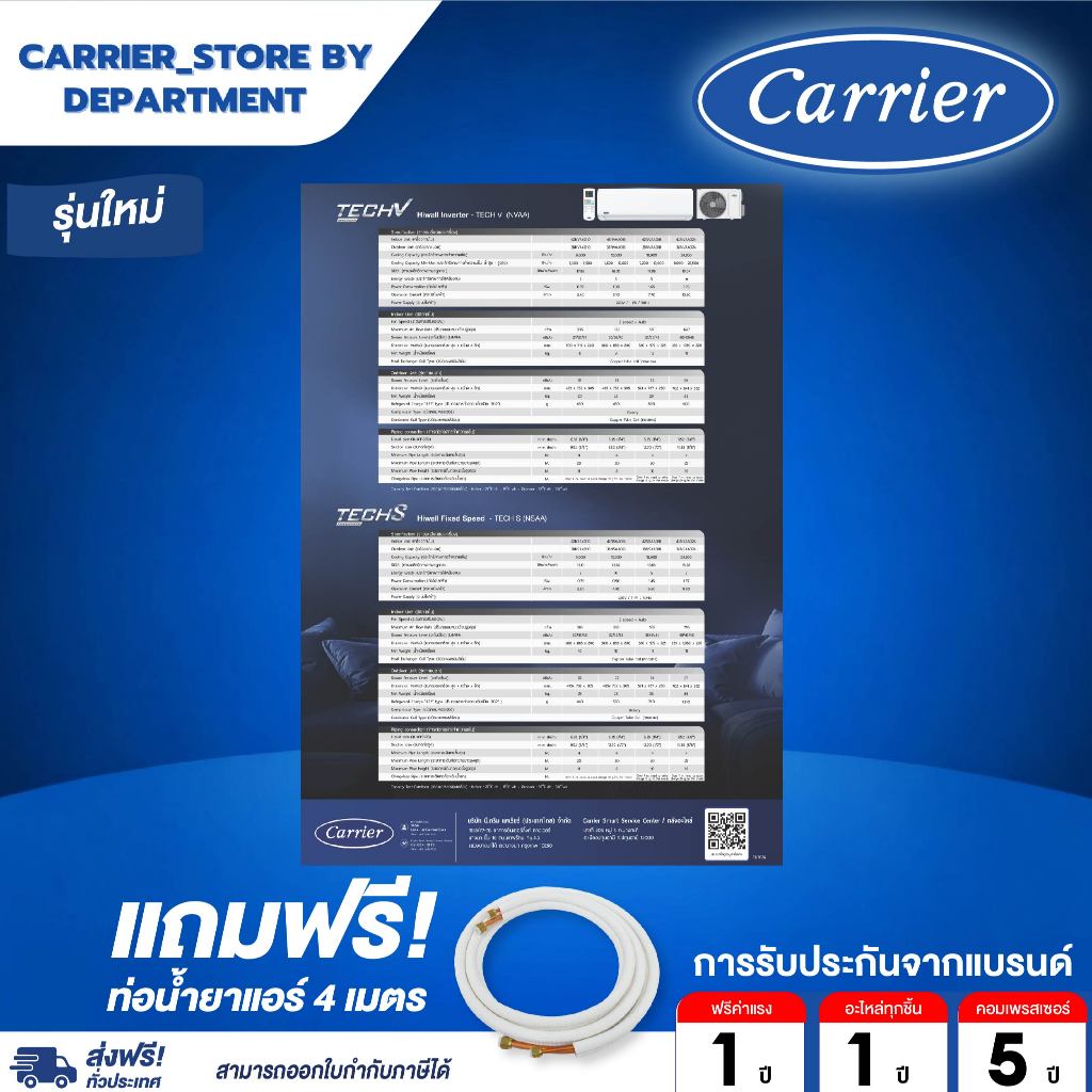 แอร์แคเรียร์CARRIERแบบติดผนังINVERTER รุ่นCOPPER SEAL 42TVDB + NEW GEN SERIES+แถมท่อน้ำยาแอร์ 4 เมตร