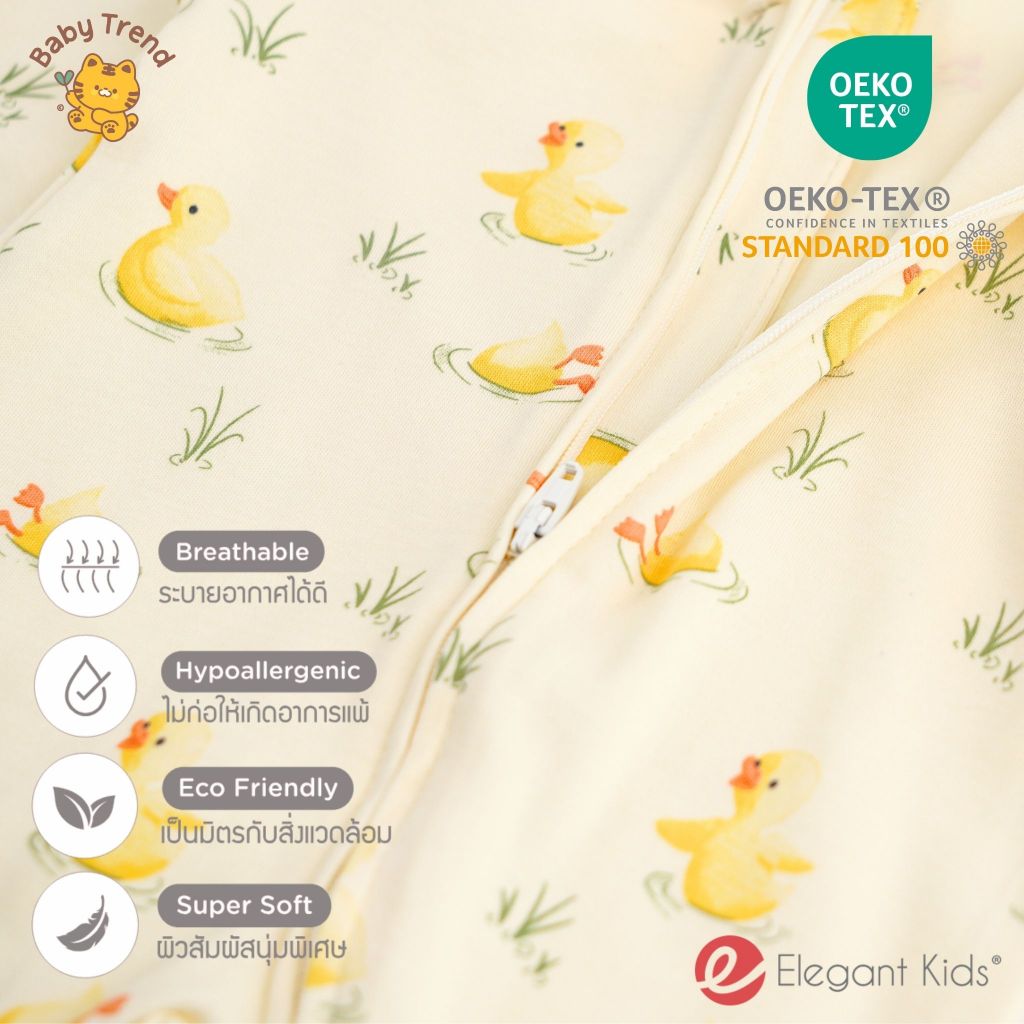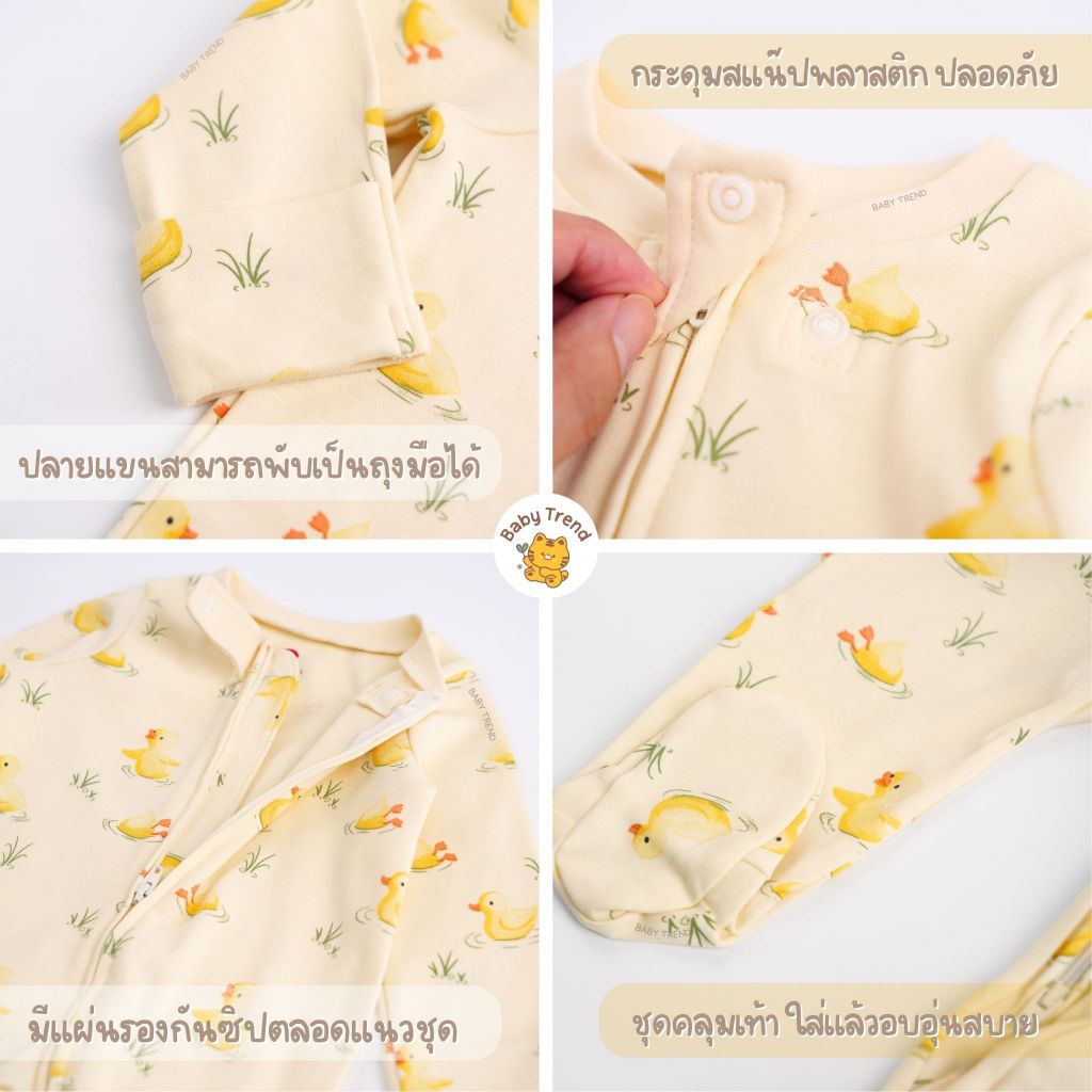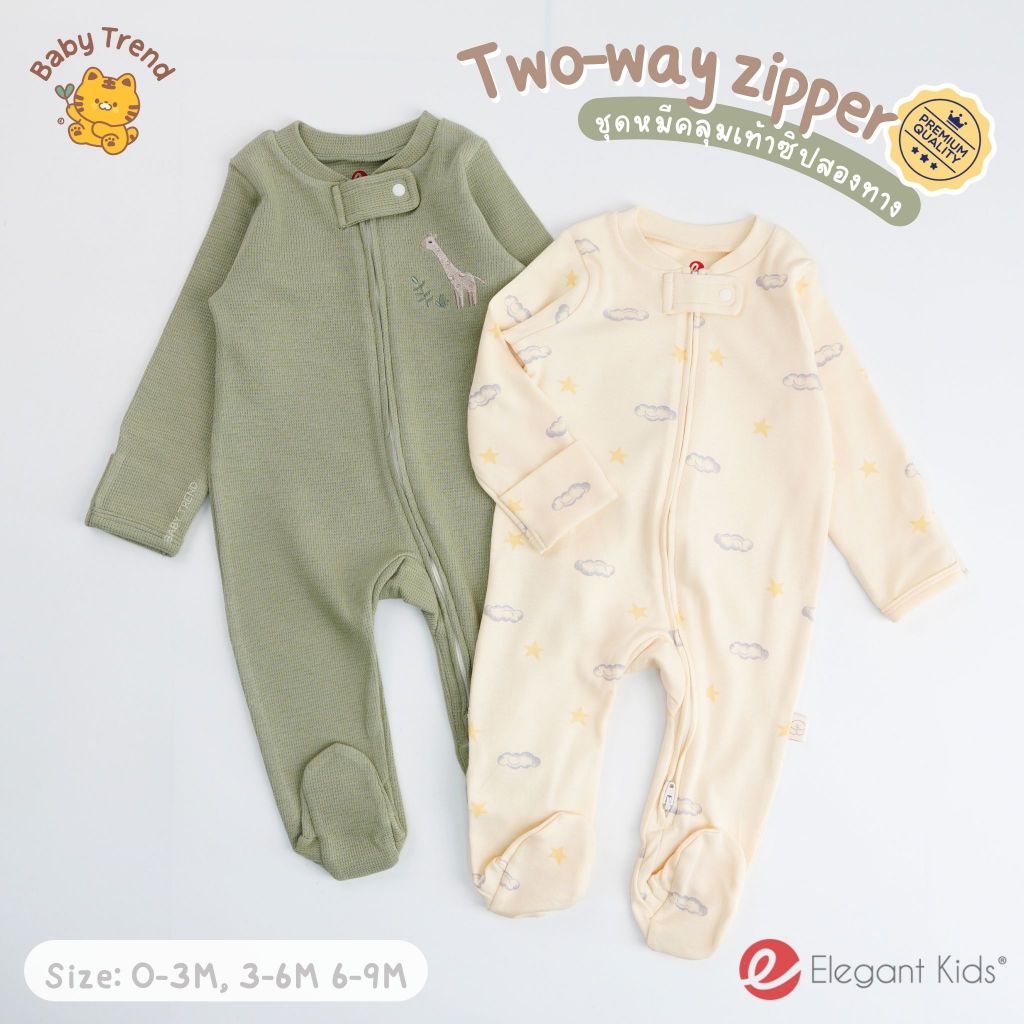 Elegant Kids ชุดหมี Two-way zipper 0-9 เดือน ปลายแขนพับคลุมมือได้ ผ้าคอตตอนใส่สบาย | Babytrend