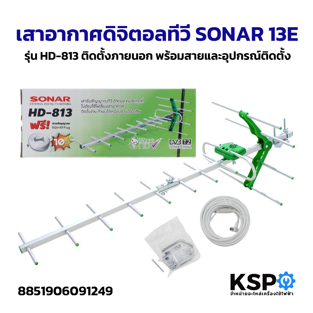 เสาอากาศดิจิตอลทีวี เสาอากาศ SONAR รุ่น DAT-02, HD-821, HD-813 ติดตั้งภายนอก พร้อมสายและอุปกรณ์ติดตั้ง อะไหล่ทีวี