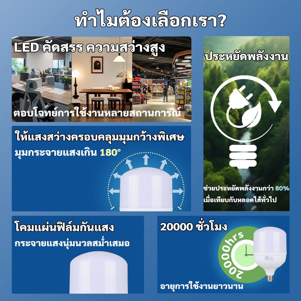 MIMI หลอดไฟ LED ขั้ว E27 แสงสีขาว แสงวอร์ม ทรงUFO 125W ถนอมสายตา สว่างมาก ประหยัดจริง แสงกระจายกว้าง
