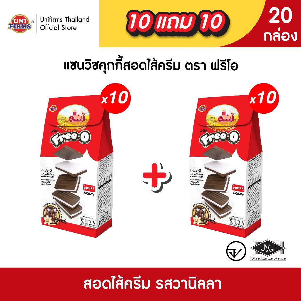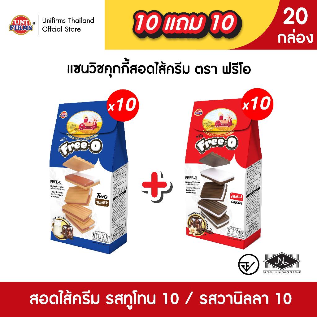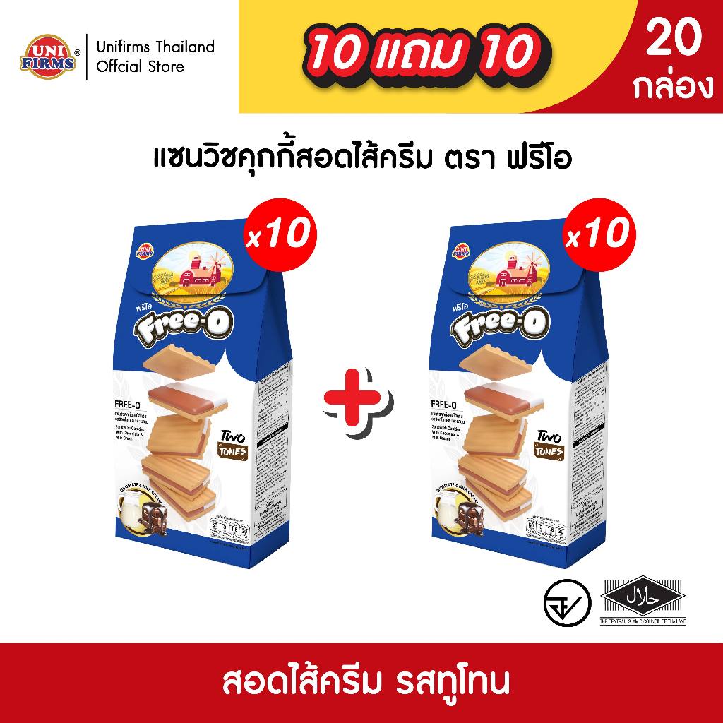 ขนมคุกกี้ฟรีโอ [ 10 แถม 10 ] กล่องสามเหลี่ยม ขนมคุกกี้สอดไส้ครีม ตรา ฟรีโอ 50 กรัม x 20 กล่อง