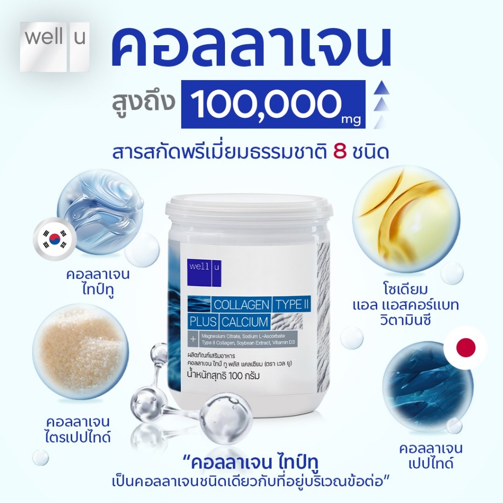 [4 กระปุก]Well U Advanced Collagen Type II 6in1/Plus Calcium เวลยู แอดวานซ์ คอลลาเจน ไทพ์ ทู