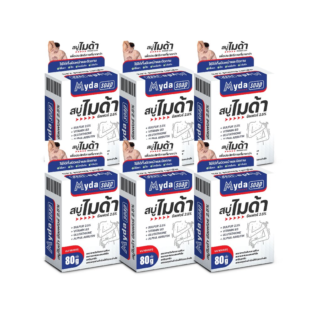 Myda Soap - สบู่ไมด้า สูตรซัลเฟอร์ 2.5% - ขนาด 80 g (1 แพ็ค 6 ก้อน)