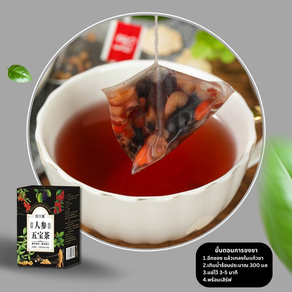 ชาจีนกล่องสีดำ เกรดพรีเมียม (สมุนไพร 6 ชนิด) - โสม หวงจิง ลูกหม่อน ผงมาคา โกจิเบอร์รี่ พุทราจีน