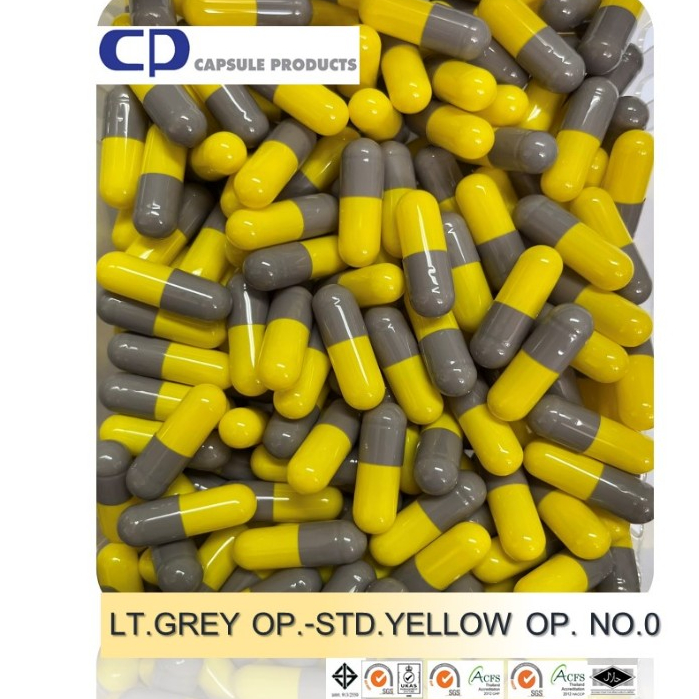 Capsule Products แคปซูลเปล่า สีเทา-เหลือง LT.GREY OP.-STD.YELLOW OP. (เบอร์ 0) บรรจุ 1000 แคปซูล/ห่อ
