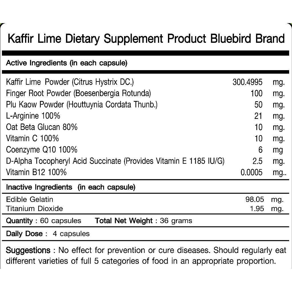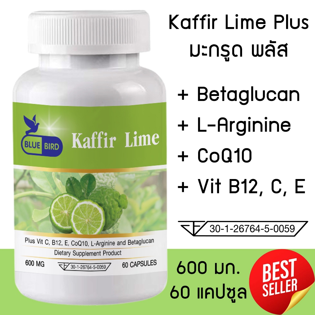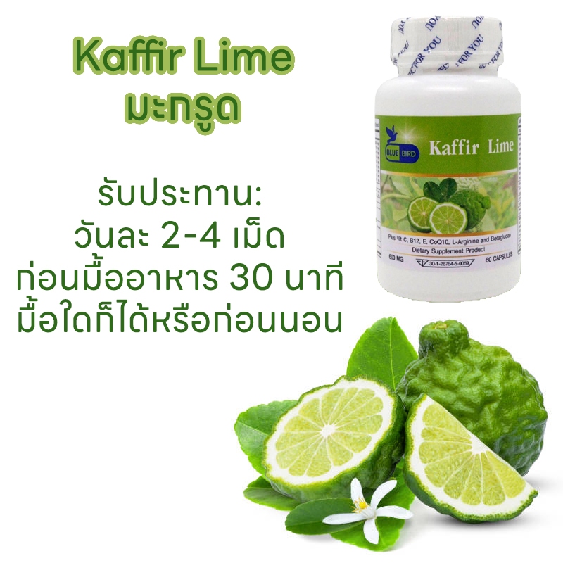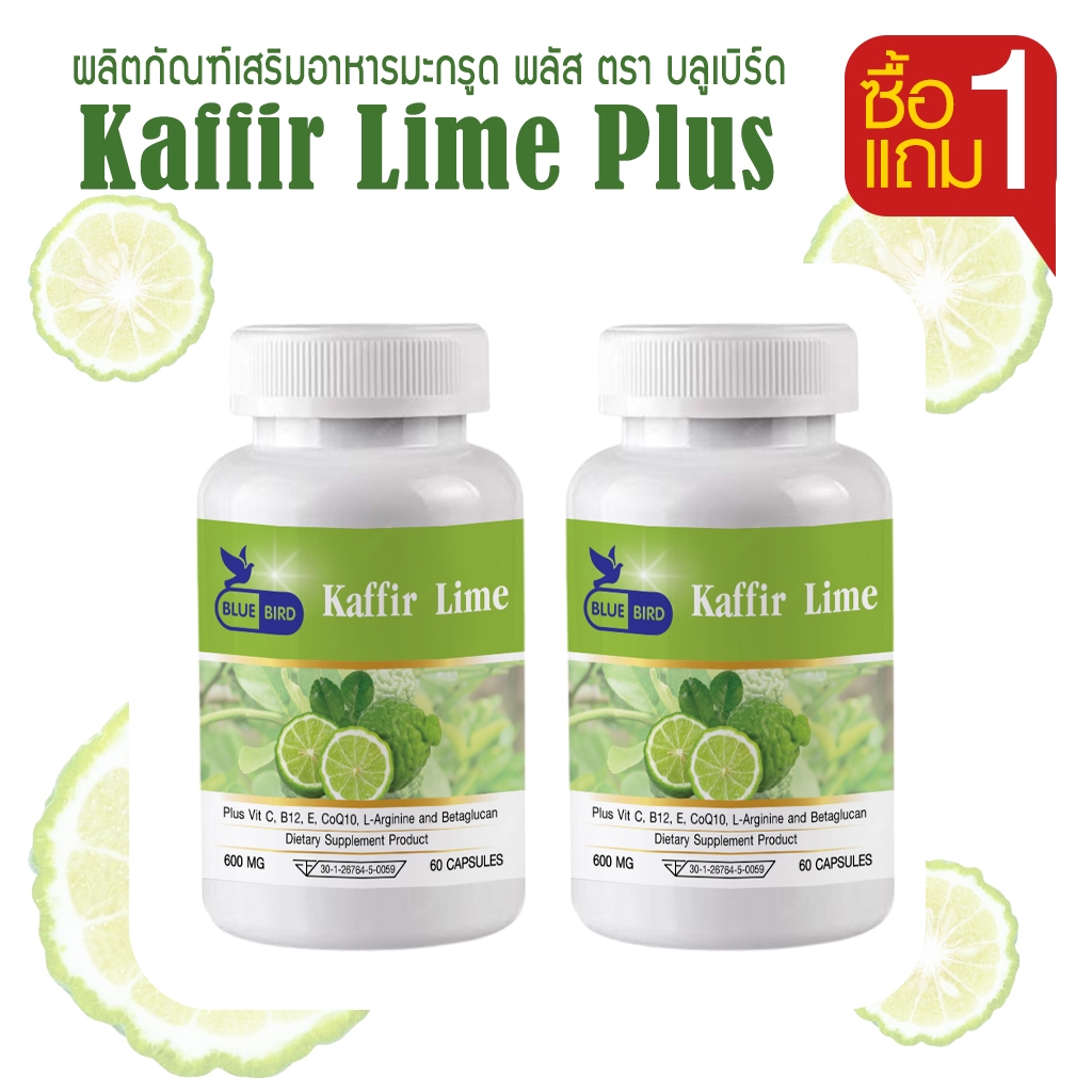 [1แถม1] มะกรูด พลัส Kaffir Lime Plus ตรา บลูเบิร์ด 600 มิลลิกรัม 60 แคปซูล