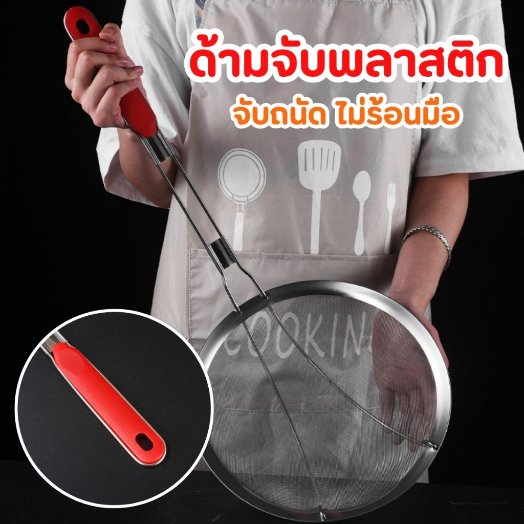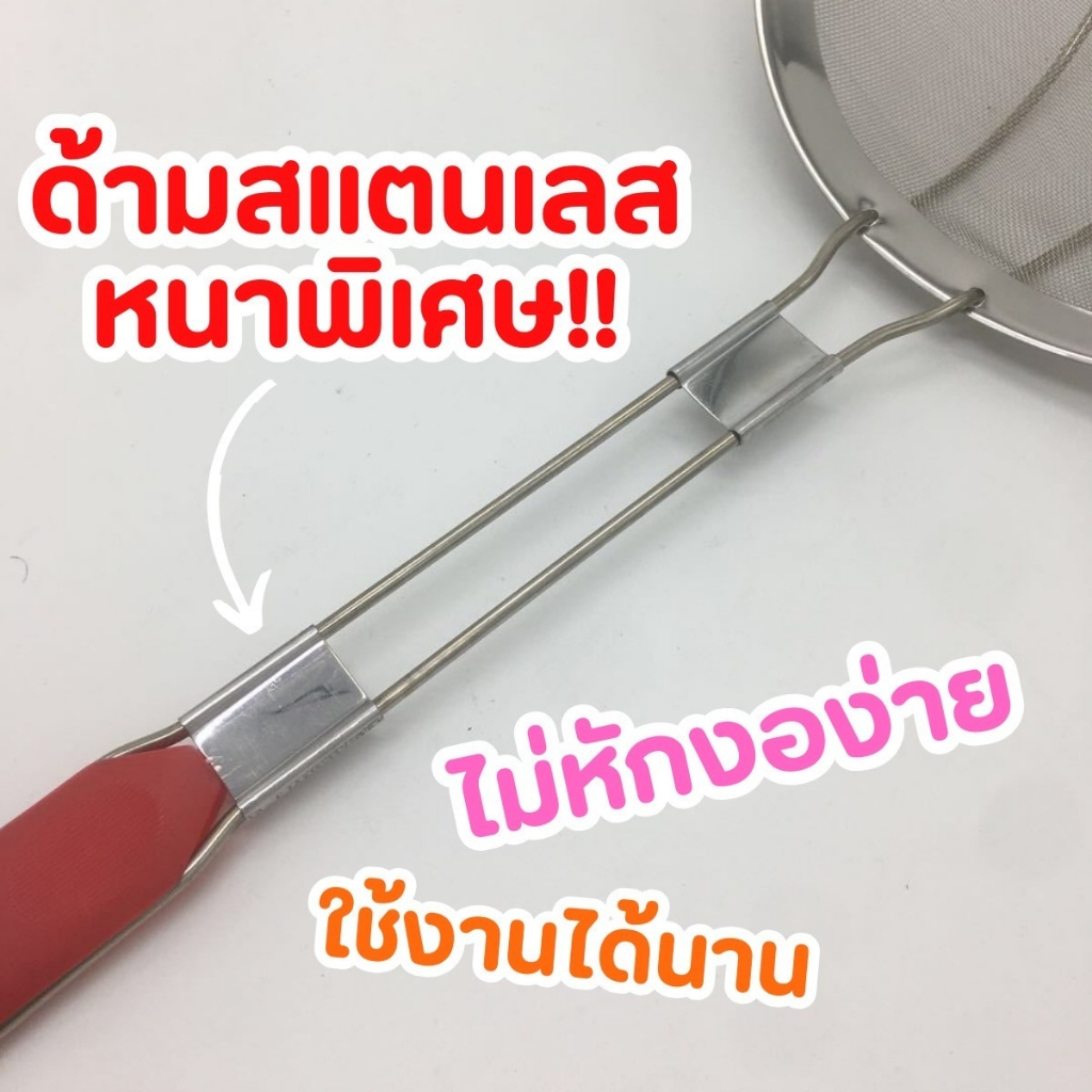 กระชอนสแตนเลสด้ามแดง มี8ขนาด 14-28 ซม. กระชอนทอด กระชอนลวกเส้น กรองอาหาร อุปกรณ์ครัวสแตนเลส
