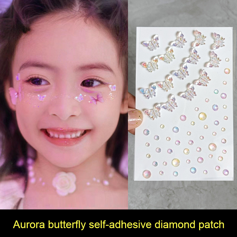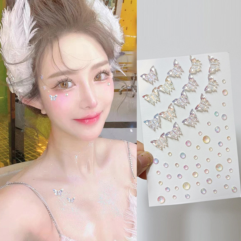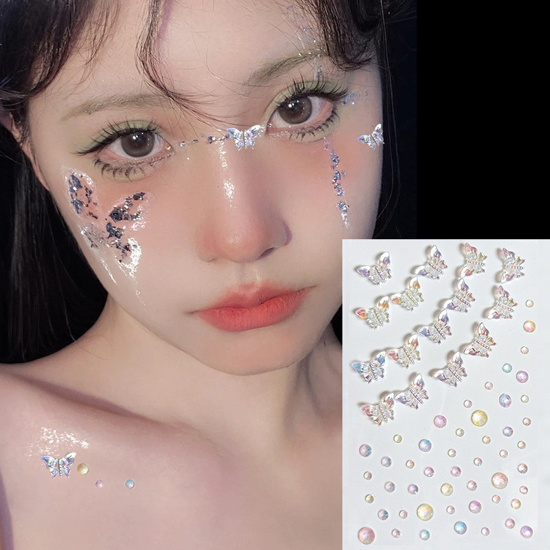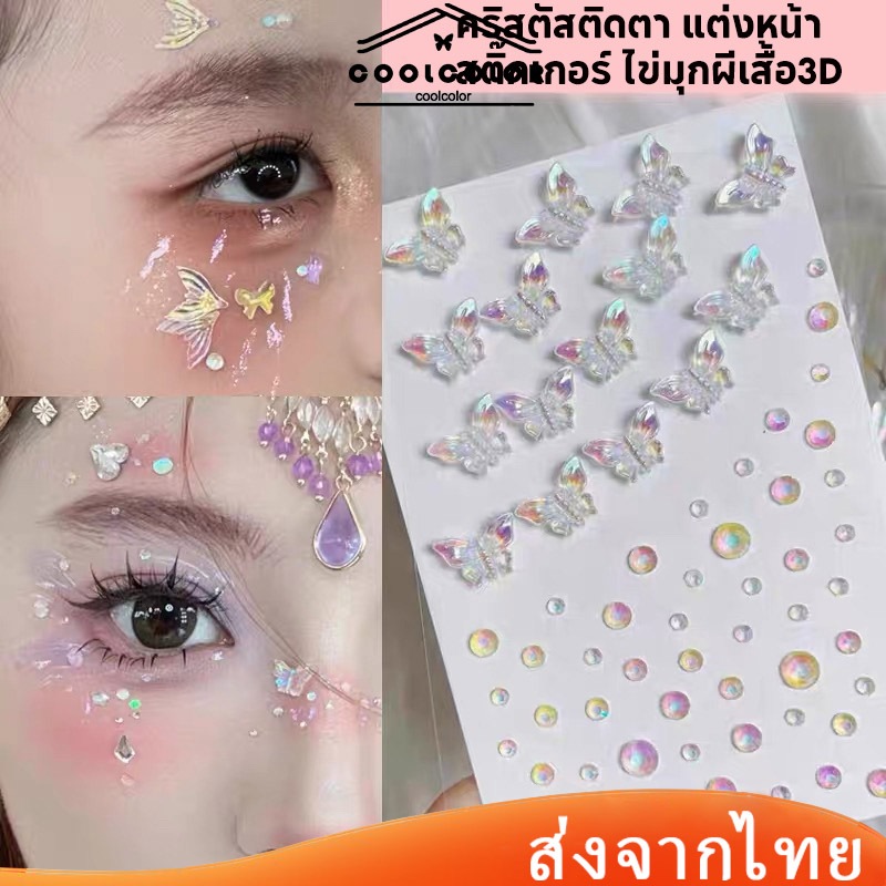ในไทย💖คริสตัสติดตาสติกเกอร์เพชรพลอยเทียมไข่มุกผีเสื้อ3Dมีกาวในตัวสําหรับตกแต่งคิ้วใบหน้าร่างกายแต่งหน้าชั่วคราวDIY
