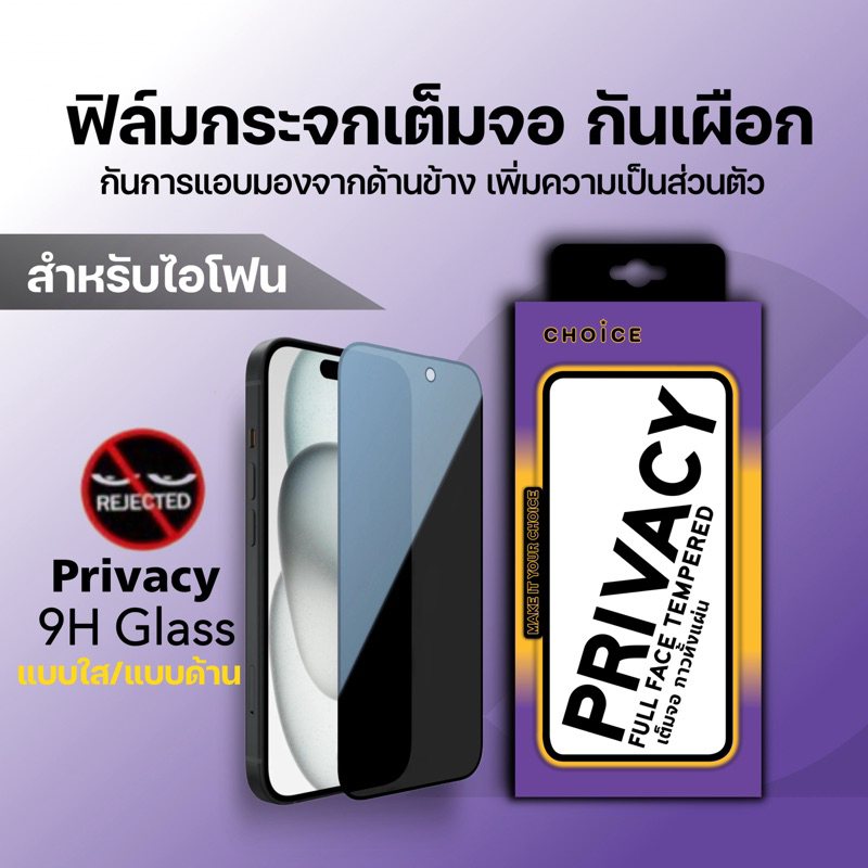 PRIVACY Film ฟิล์มกระจกเต็มจอกันมอง แบบใส/แบบด้าน สำหรับรุ่นไอโฟน