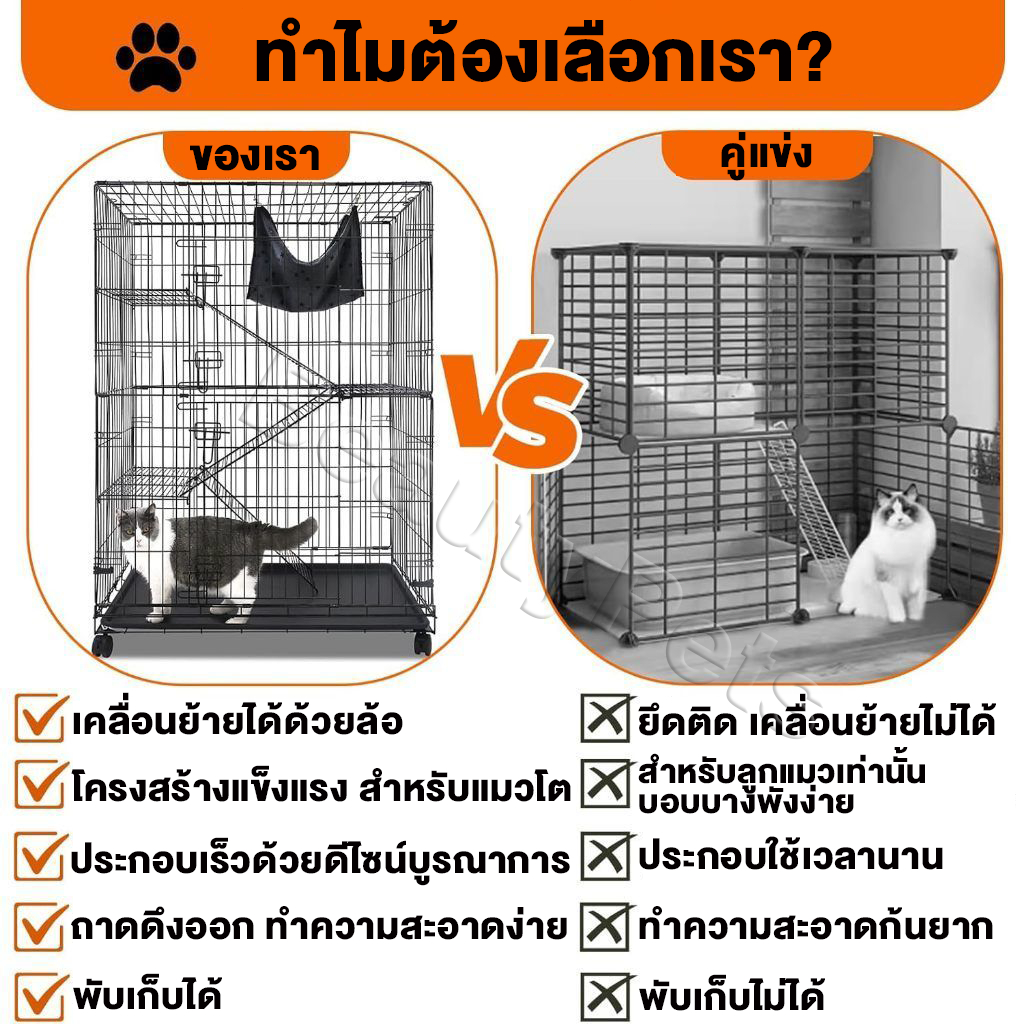 กรงแมว คอนโด4ชั้น กรงสัตว์เลี้ยง กรงแมวมีล้อ กรงหมา ขนาดใหญ่ พับได้ กรงแมวขนาดใหญ่ ประกอบง่าย