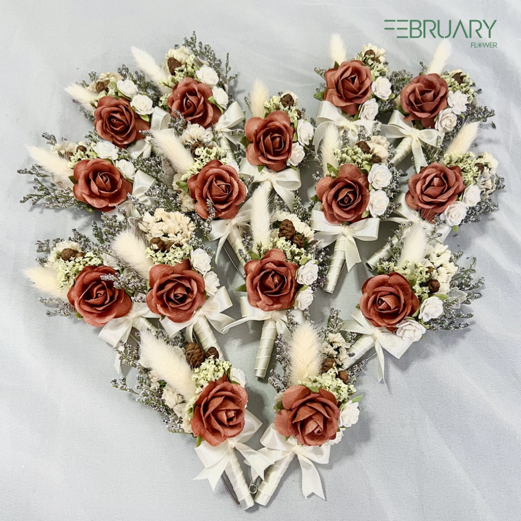 ดอกไม้ปักอก เข็มกลัดดอกไม้ติดเสื้อ เข็มกลัดติดหน้าอกมินิมอลงานมงคล-งานแต่งงาน-งานฉลอง (จัดส่ง1-2วัน)