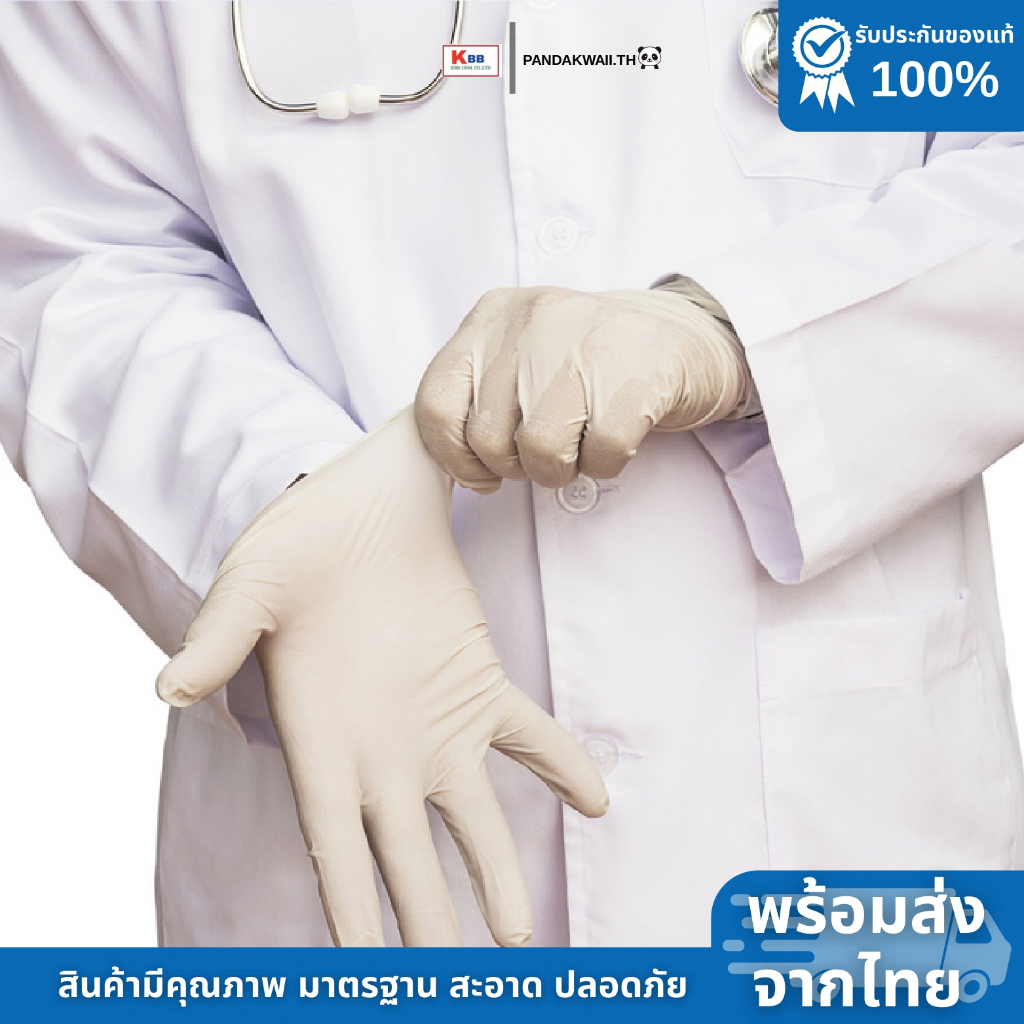 ถุงมือยางลาเท็กซ์ ชนิดมีแป้ง Brotouch สียางธรรมชาติ ยืดเหนียว ทนทาน ไม่ขาดง่าย พร้อมส่ง