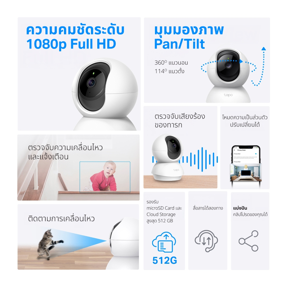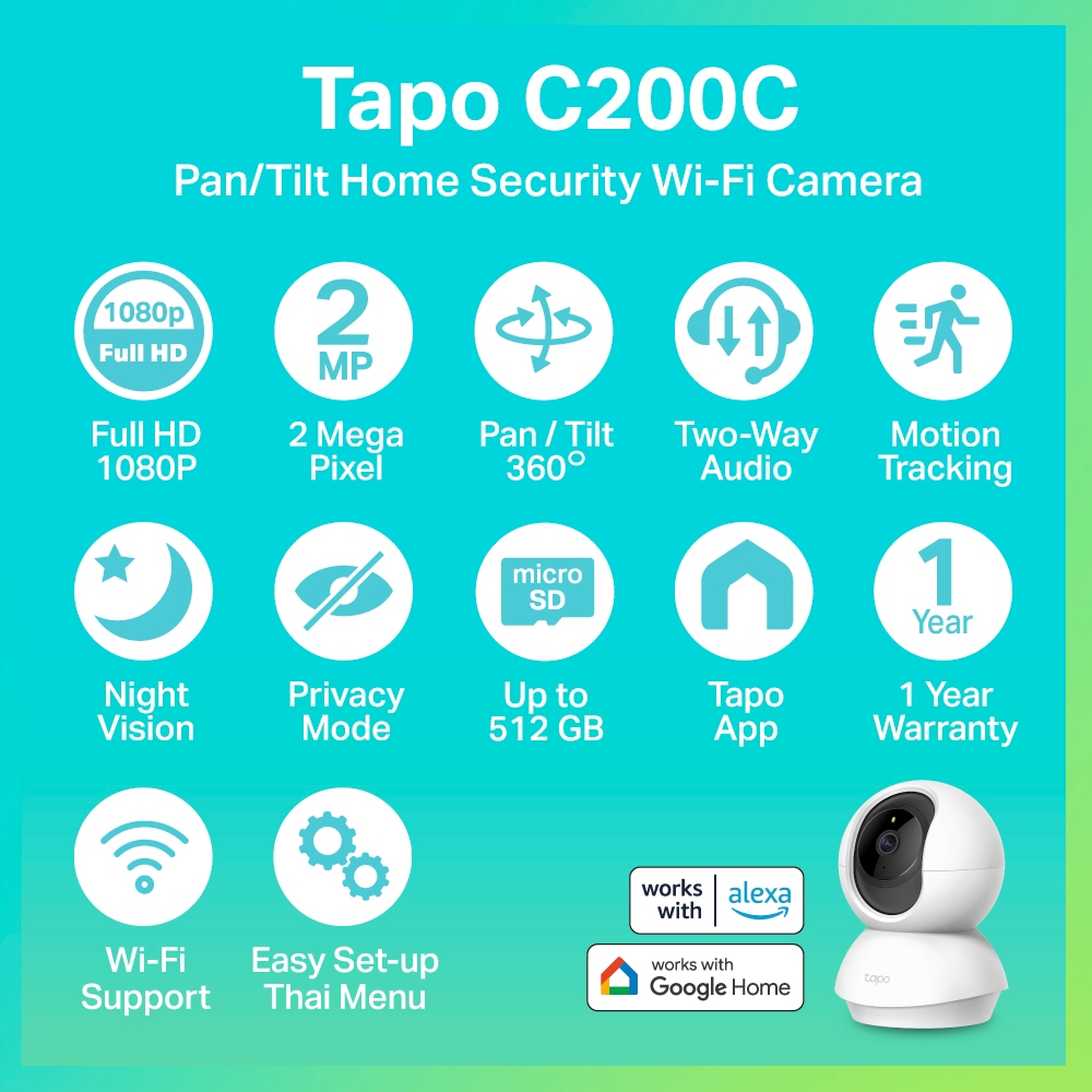 TP-Link Tapo C200C กล้องไวไฟ 2MP Full HD สื่อสาร2ทาง ตรวจจับการเคลื่อนไหวพร้อมเตือน รองรับMicro SDสูงสุด512GB ประกัน1ปี