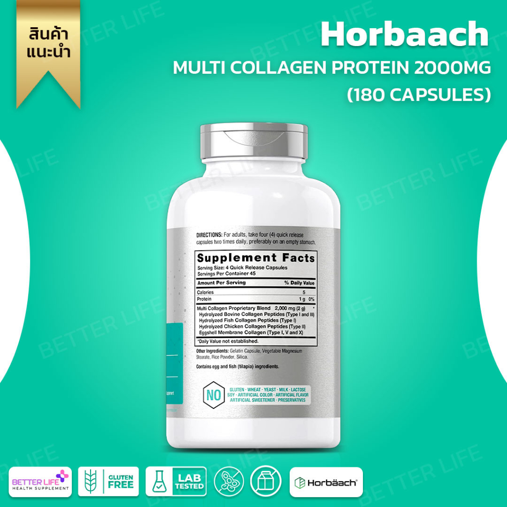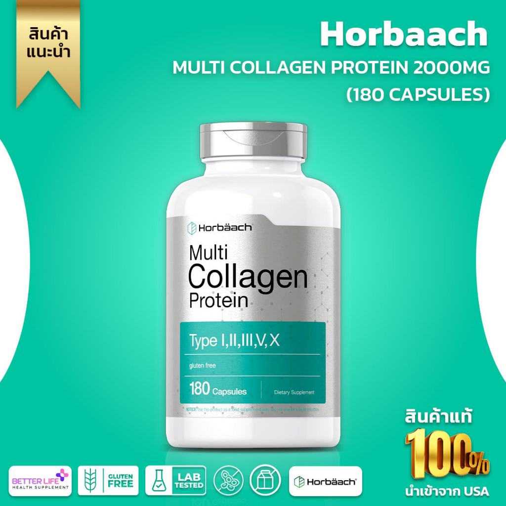 Horbaach Multi Collagen Protein 2000 mg | 180 Capsules | Collagen Peptide Pills (No.588)