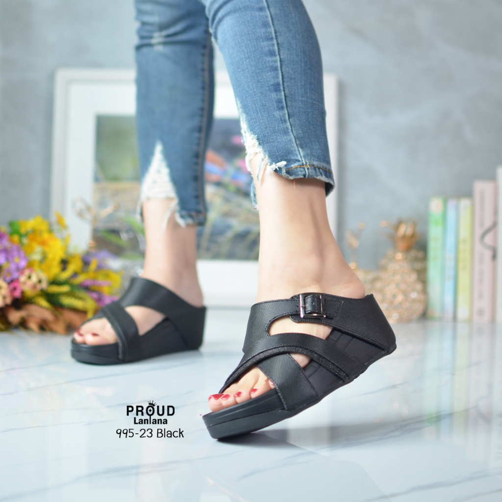 995-23 รองเท้าสุขภาพเสริมส้นสูง2.5นิ้ว สวมไหมดิ้นทองสายเข็มขัดปรับสายได้