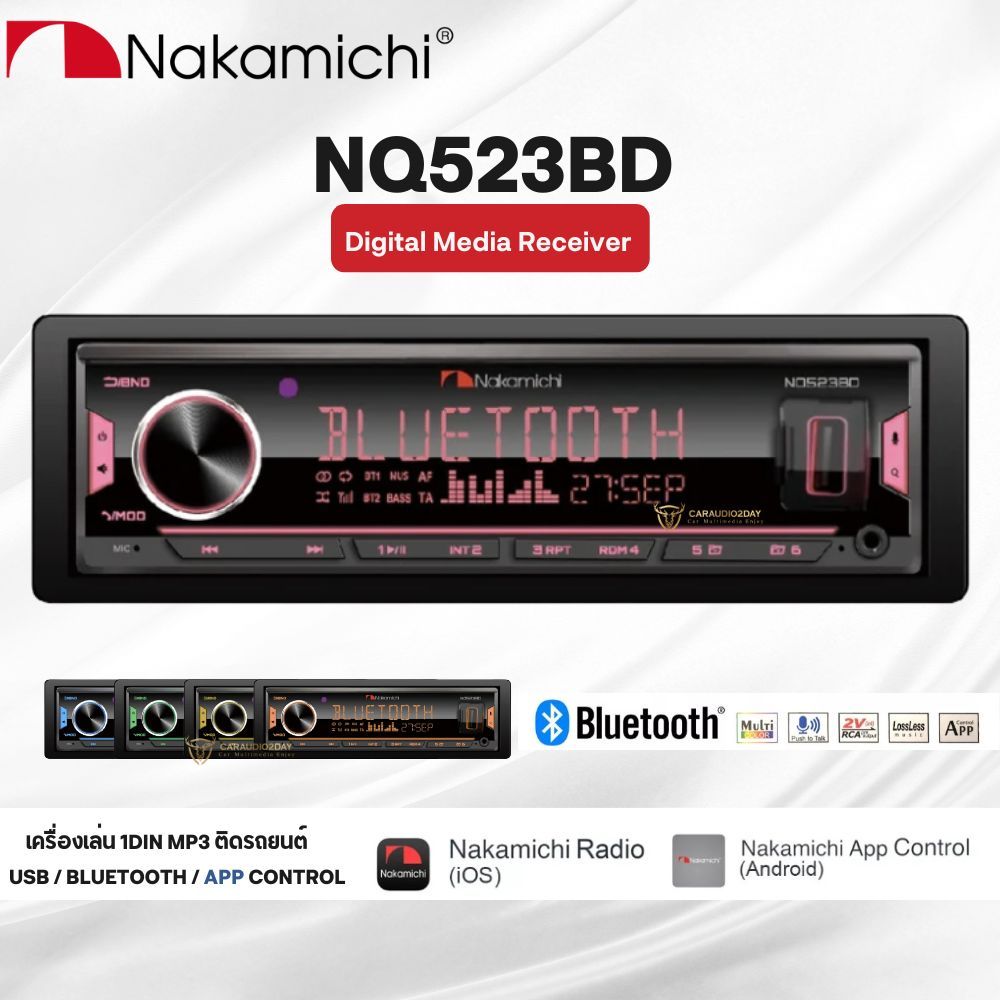 เครื่องเล่น NAKAMICHI NQ523BD GEN2 วิทยุติดรถยนต์ 1DIN เครื่องเสียงติดรถมีบลูทูธ วิทยุ1din มีAPPปรับเสียง