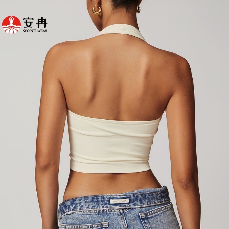 AnranSports Braผู้หญิงs Backless เซ็กซี่ Halter คอวี Breathable Bra Gym ออกกําลังกาย