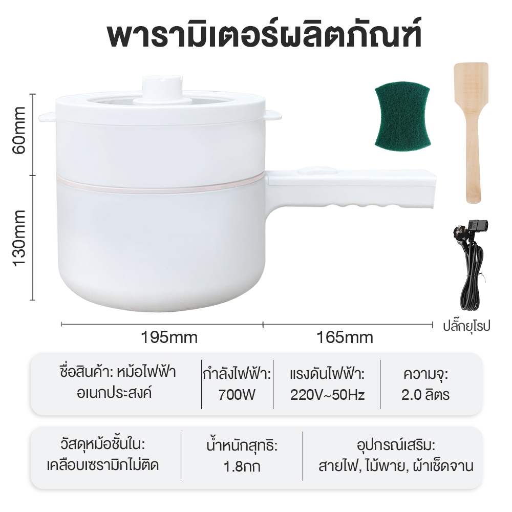 Phito หม้อไฟฟ้า กระทะไฟฟ้า 700W ควบคุมอุณหภูมิสองระดับ ความจุสูง หม้อไฟฟ้า อเนกประสงค์ ด้วยเรือกลไฟ