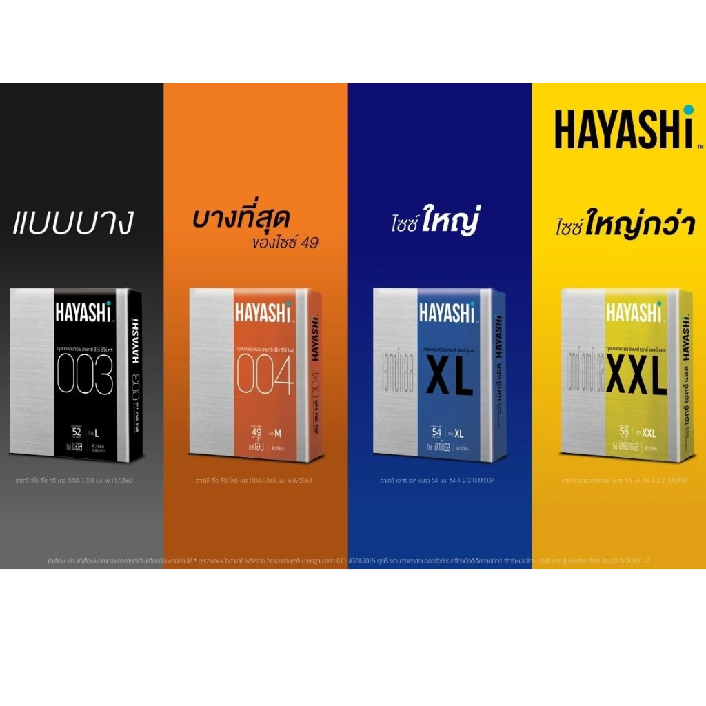 Hayashi ถุงยางอนามัย ฮายาชิ เลือกแบบได้ แท้100% ขนาด 49 - 56 มม.