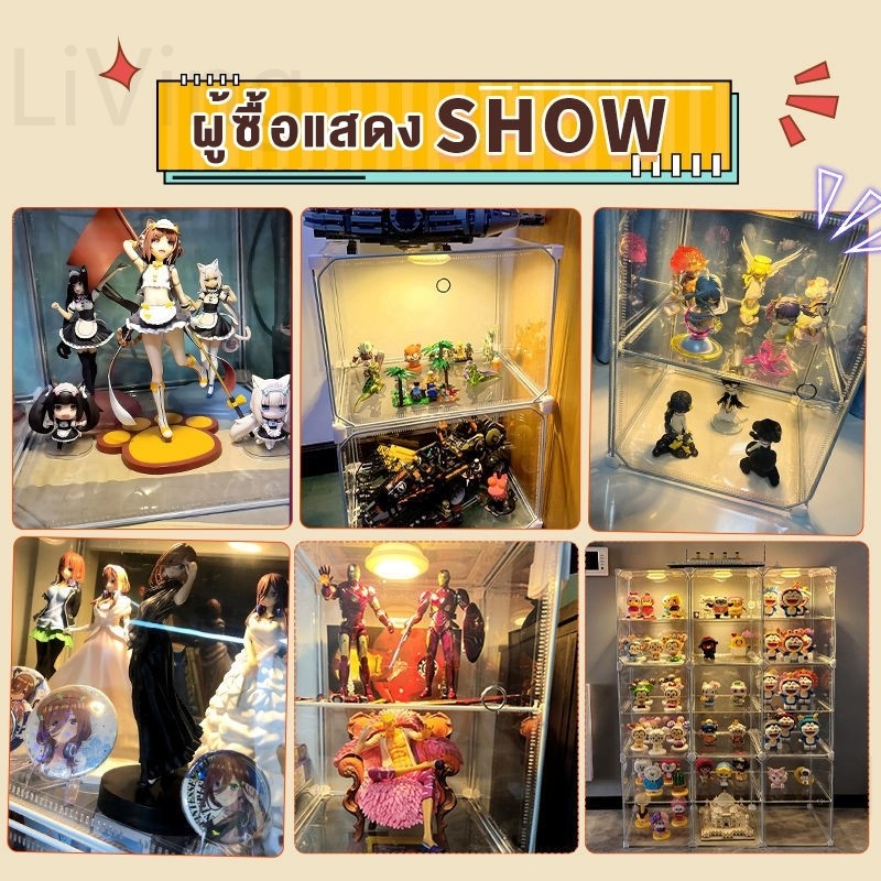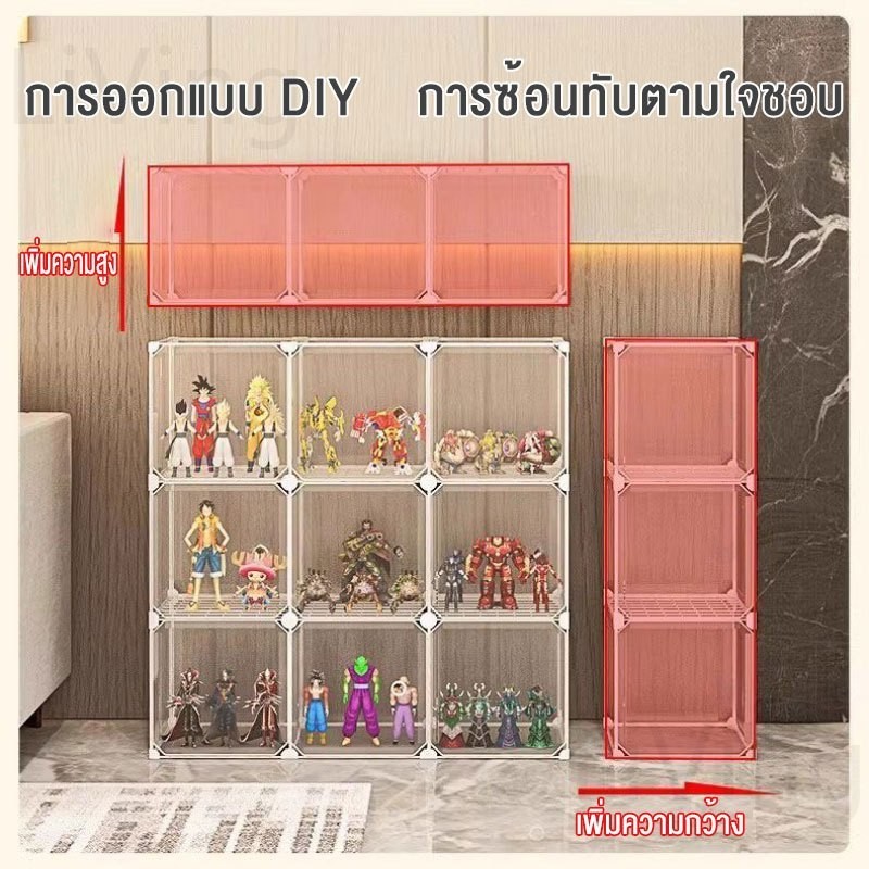 Living ตู้โชว์ตุ๊กตา ชั้นวางกระเป๋า DIY 4/6/8 ชั้น ตู้กระจก ชั้นวางโมเดล ตู้ใส่ กระเป๋า แบรนด์เนม พร้อมความจุขนาดใหญ่