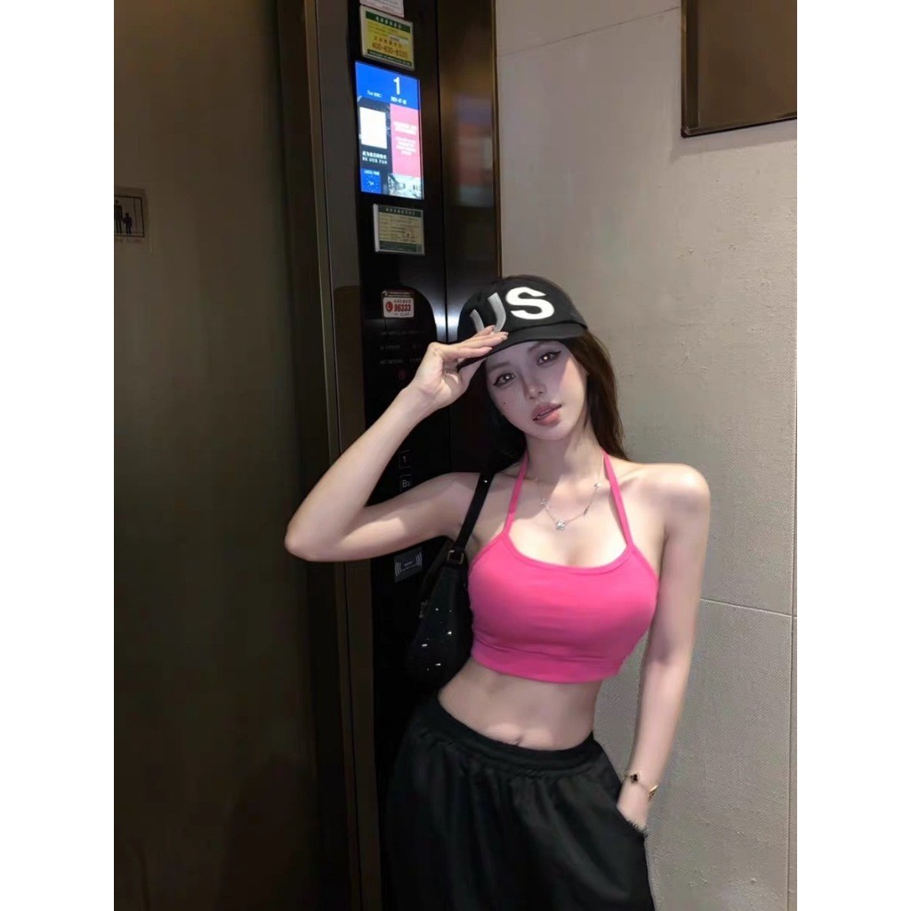 Shop_mklพร้อมส่ง🚚 มินิครอปสายคล้องเป็นแบบผูก มีฟองน้ำในตัว ผ้านิ่มใส่สบายมีทั้งหมด10สี #J525
