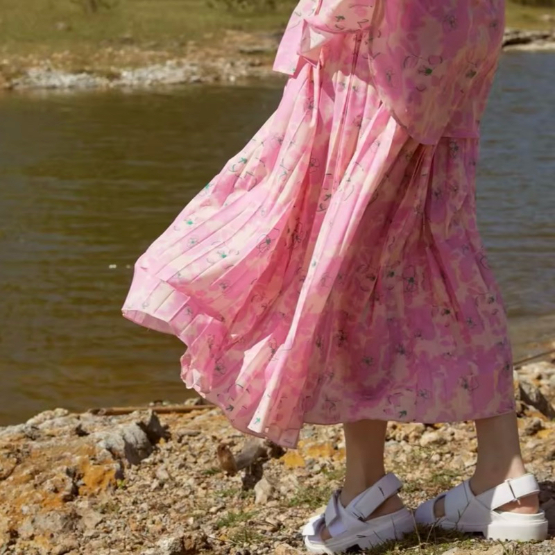 (New) พร้อมส่ง Endless Holiday Pleatful Skirt Pink Ballet / Butter Scotch กระโปรงพลีทยาว
