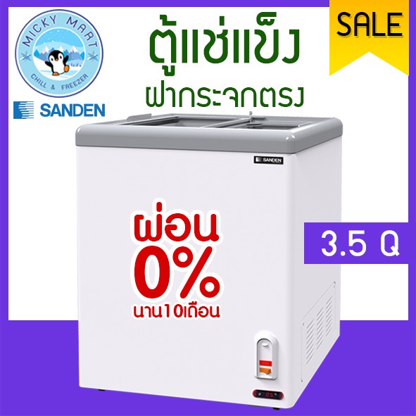 ตู้แช่แข็งฝากระจกตรง แช่เนื้อ อาหาร ไอศรีม ความจุ 100 ลิตร/3.5 คิว รุ่น SNG-0105 ยี่ห้อ SANDEN INTERCOOL