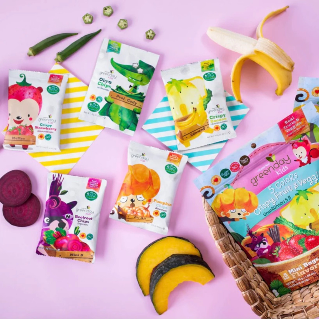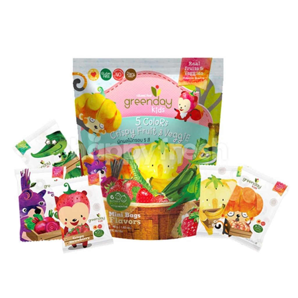 [ 4 ซอง] กรีนเดย์ ฟรุ๊ตฟาร์ม ผักผลไม้ 5 สี (46g) GreendayKids 5 colour Crispy fruit&