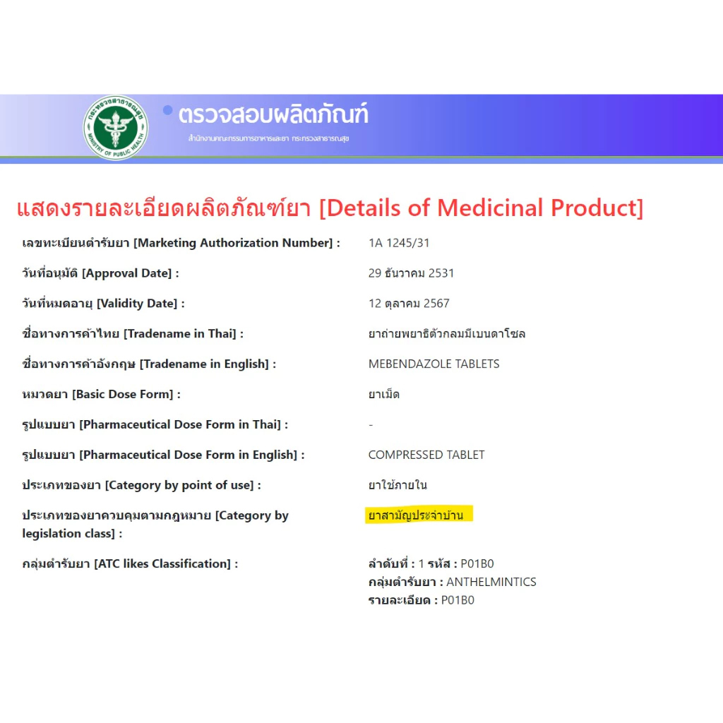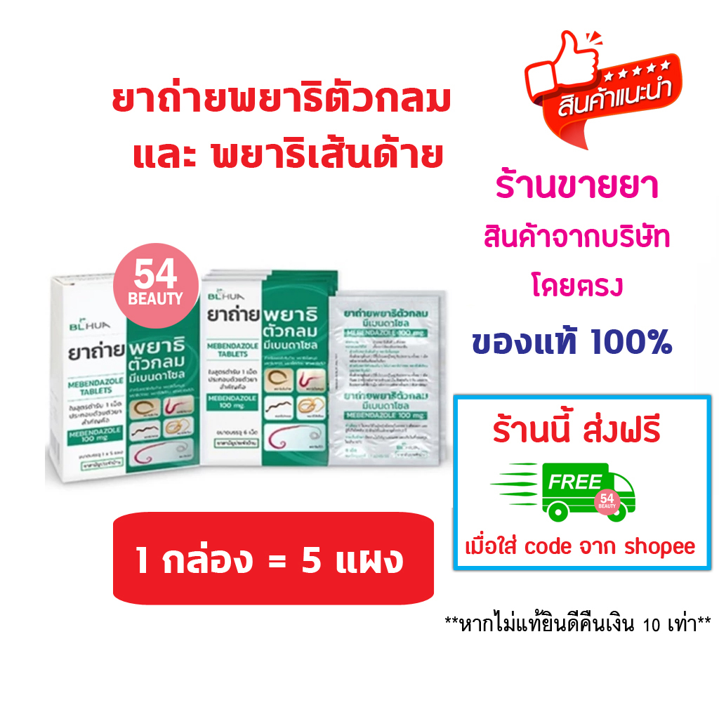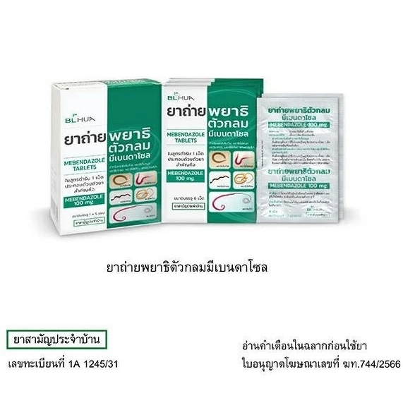 🔥พร้อมส่ง🔥 ยกกล่อง 5 แผง ยาถ่ายพยาธิตัวกลม Mebendazole 100 mg. มีเบนดาโซล ยาถ่ายพยาธิ รวม แผงละ 6 เม็ด ยาสามัญประจำบ้าน