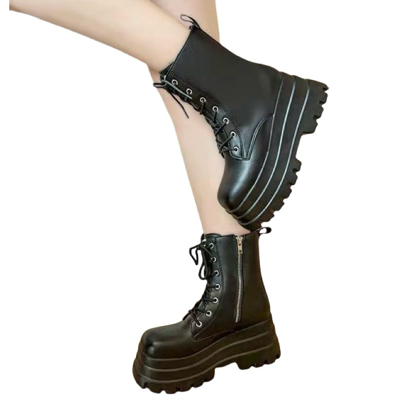 Chole G:APT Posies Combat Boots size 37-42 รองเท้าบูทเกาหลี ส้นสูง 7cm (SH0162)