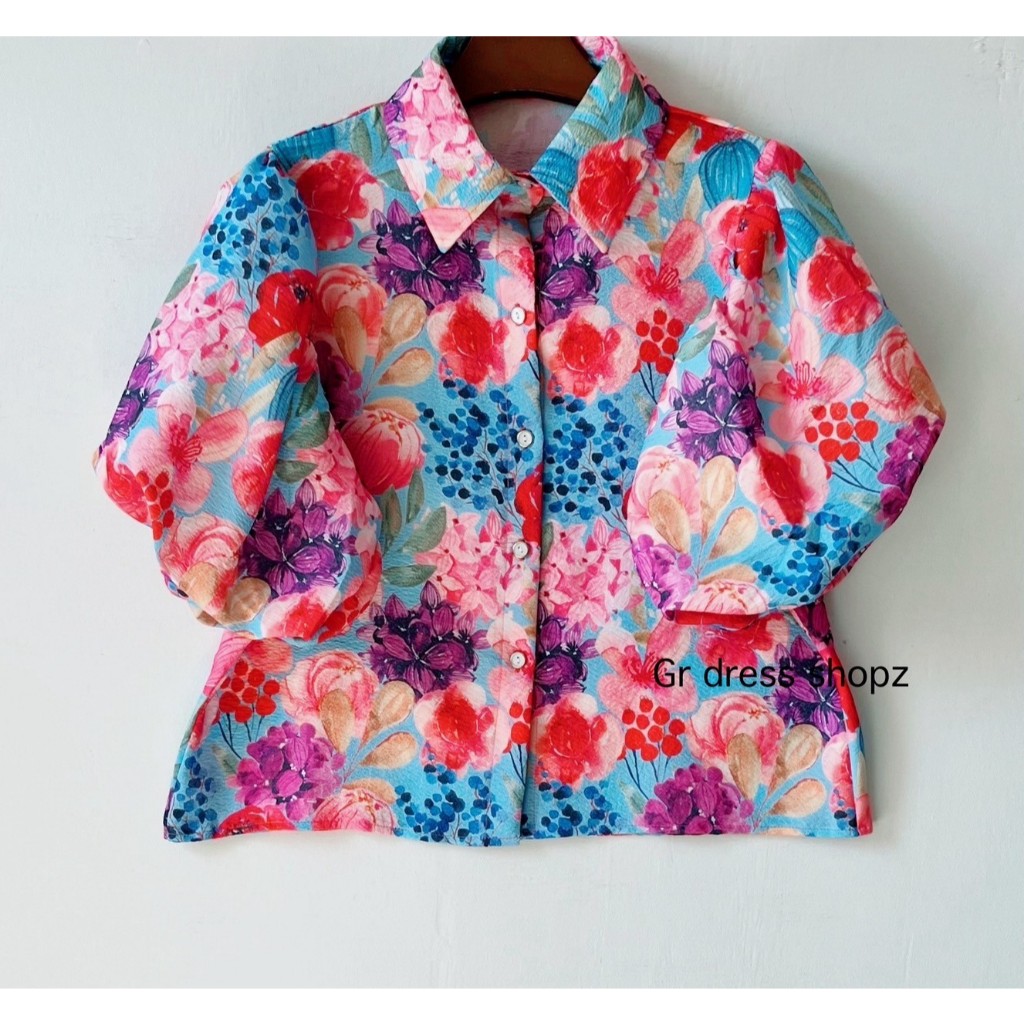 ป้าย Princess เสื้อเชิ้ตผ้าบับเบิ้ลพิมพ์ลายแขนบอลลูน อก 40 นิ้ว ยาว 22 นิ้ว