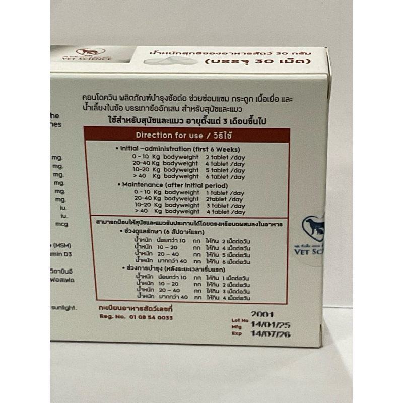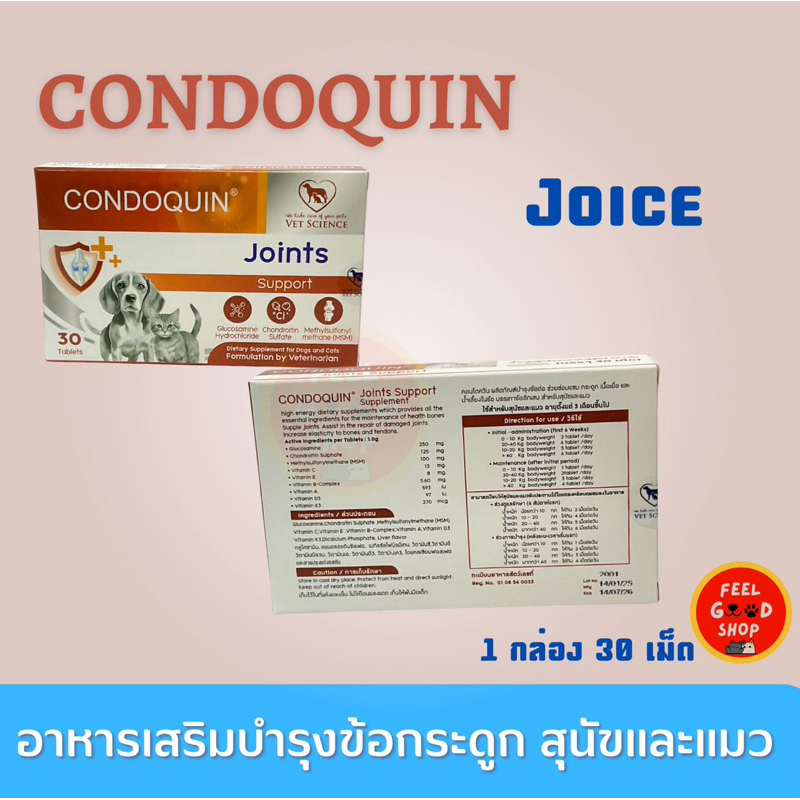 Condoquin joint support 30 เม็ด Exp.24/03/2027 บำรุงข้อต่อ กระดูก เนื้อเยื่อและน้ำเลี้ยงในข้อ สำหรับสุนัขแและแมว