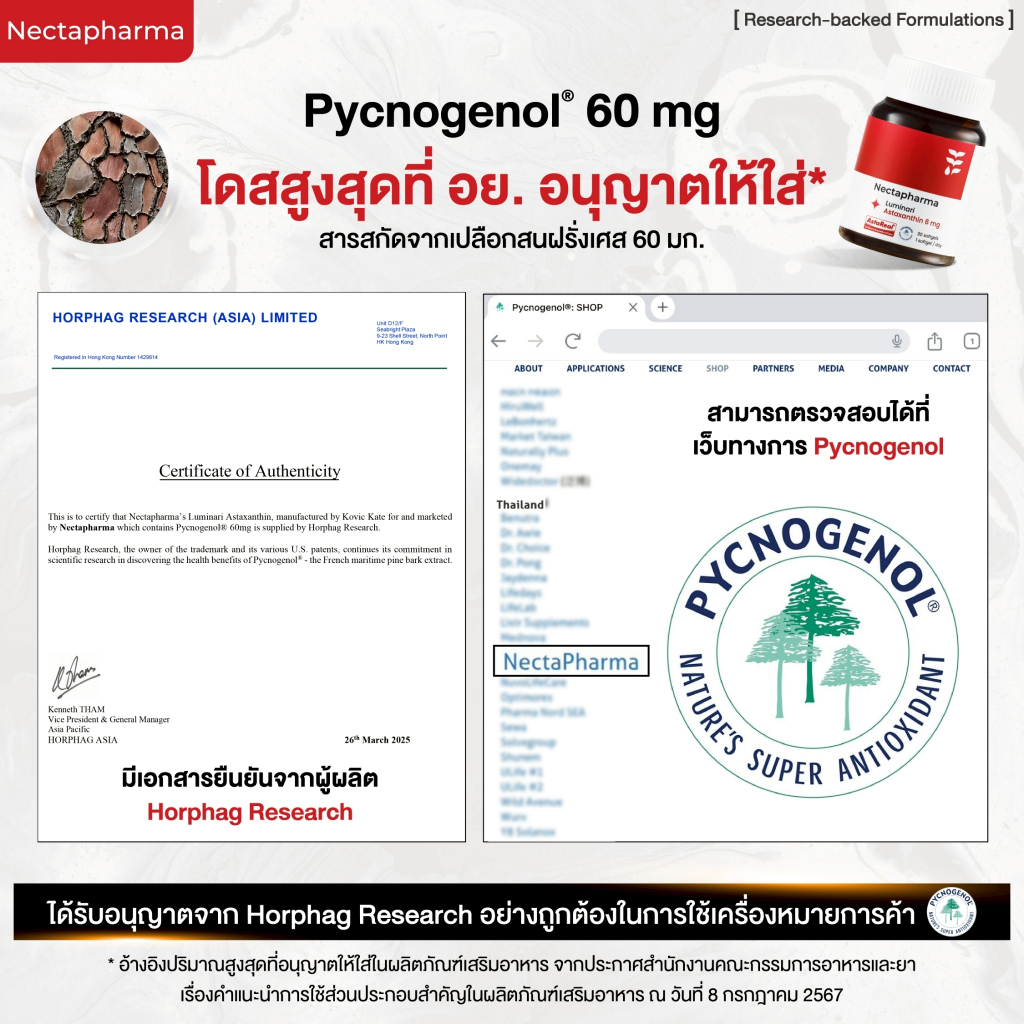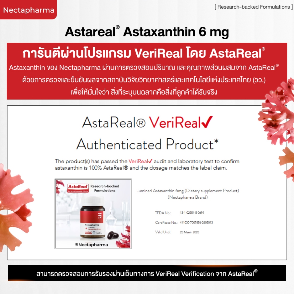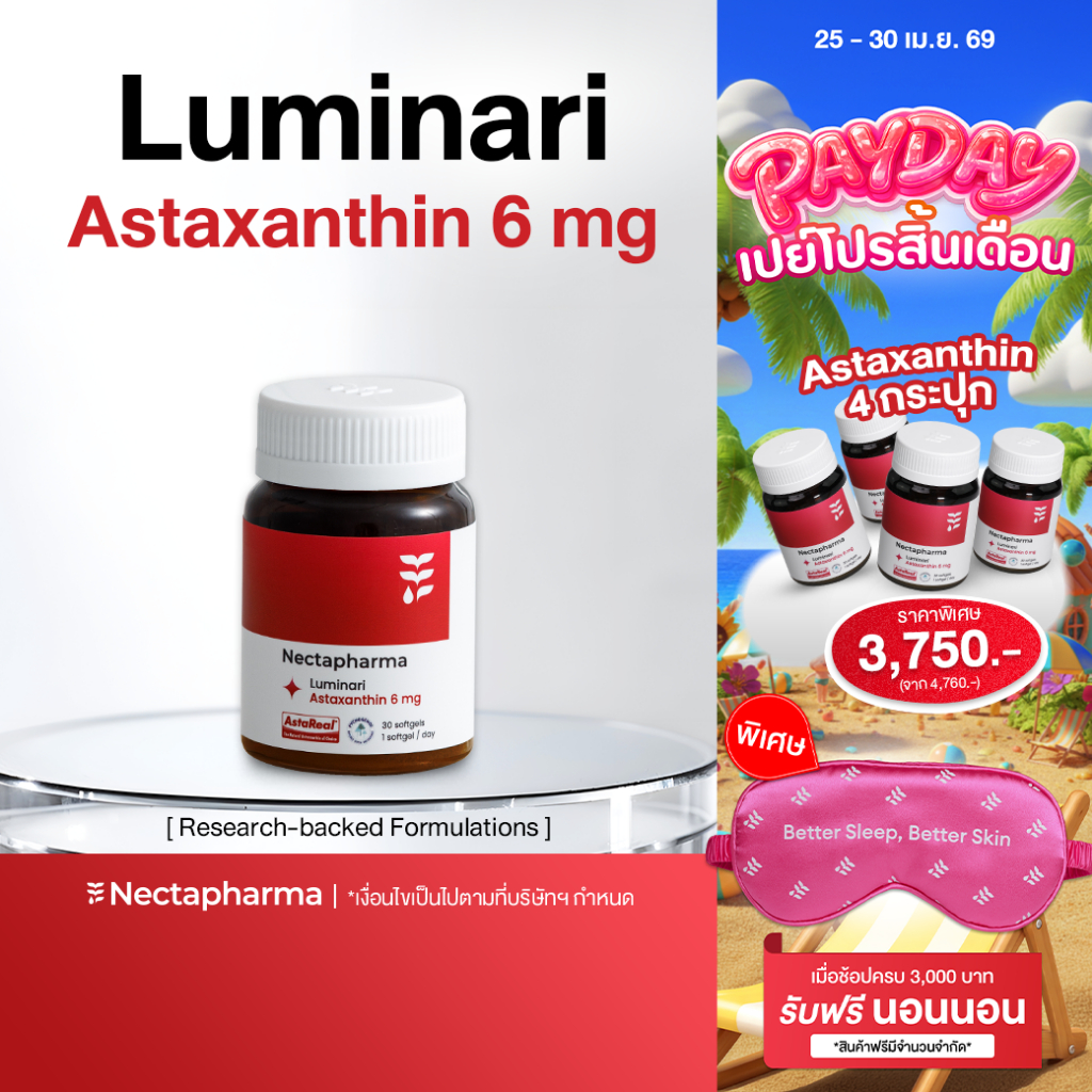 Nectapharma Luminari Astaxanthin ลูมินารี่ แอสตาแซนธิน ประกอบด้วย Pycnogenol CoQ10 Tocotrienol Piperine Zinc