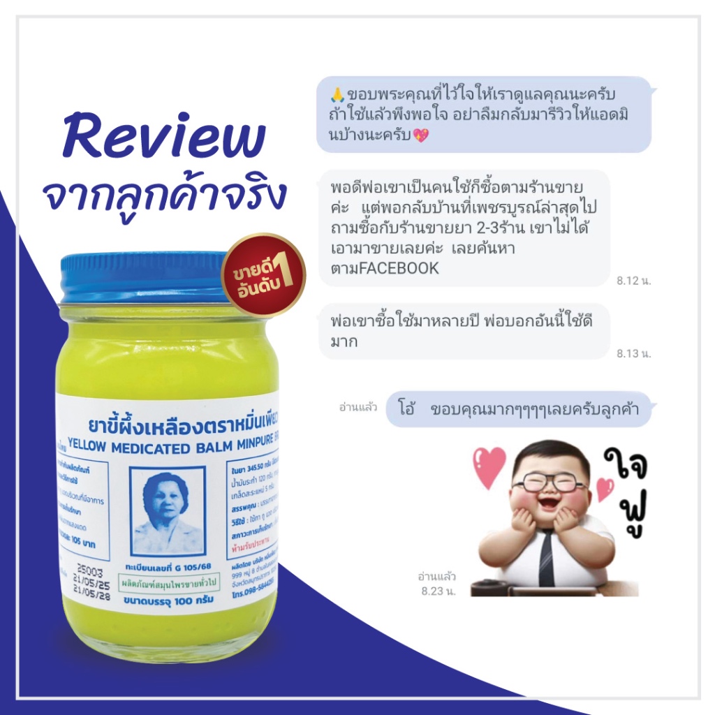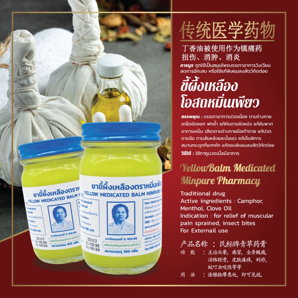 หมิ่นเพียว ยาหม่องสีเหลือง ขนาด 50 กรัม (แพ็ค 1 ขวด)